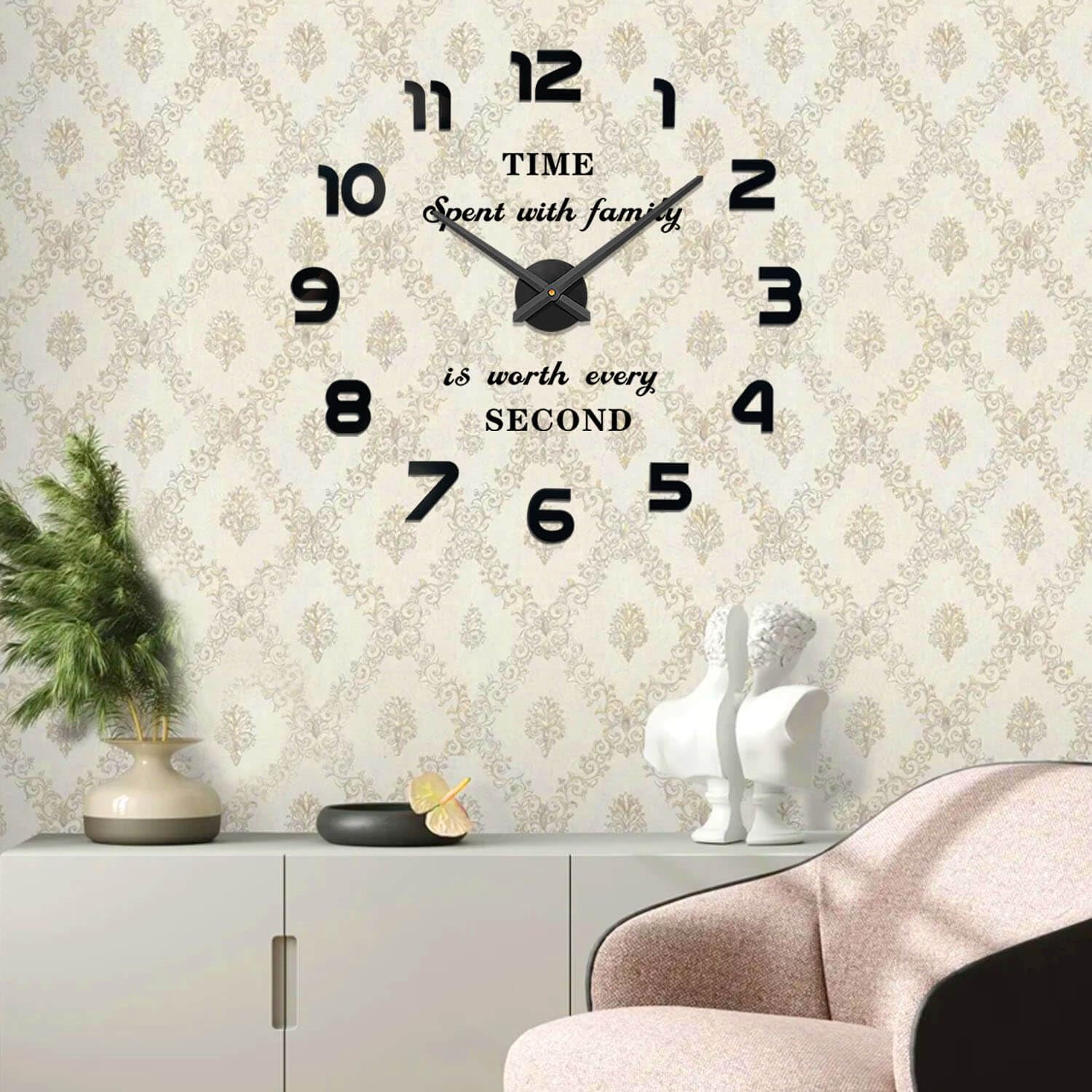 - EASY TO INSTALL: The wall decor clock comes with self-adhesive numbers and auxiliary scale ruler, also there is an installation video for your reference. So one can easily to install and enjoy the DIY fun of making your own unique house decorations for living room.