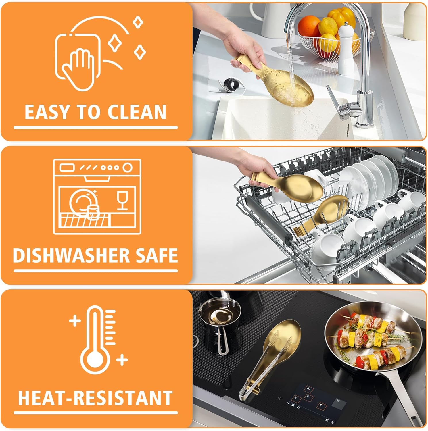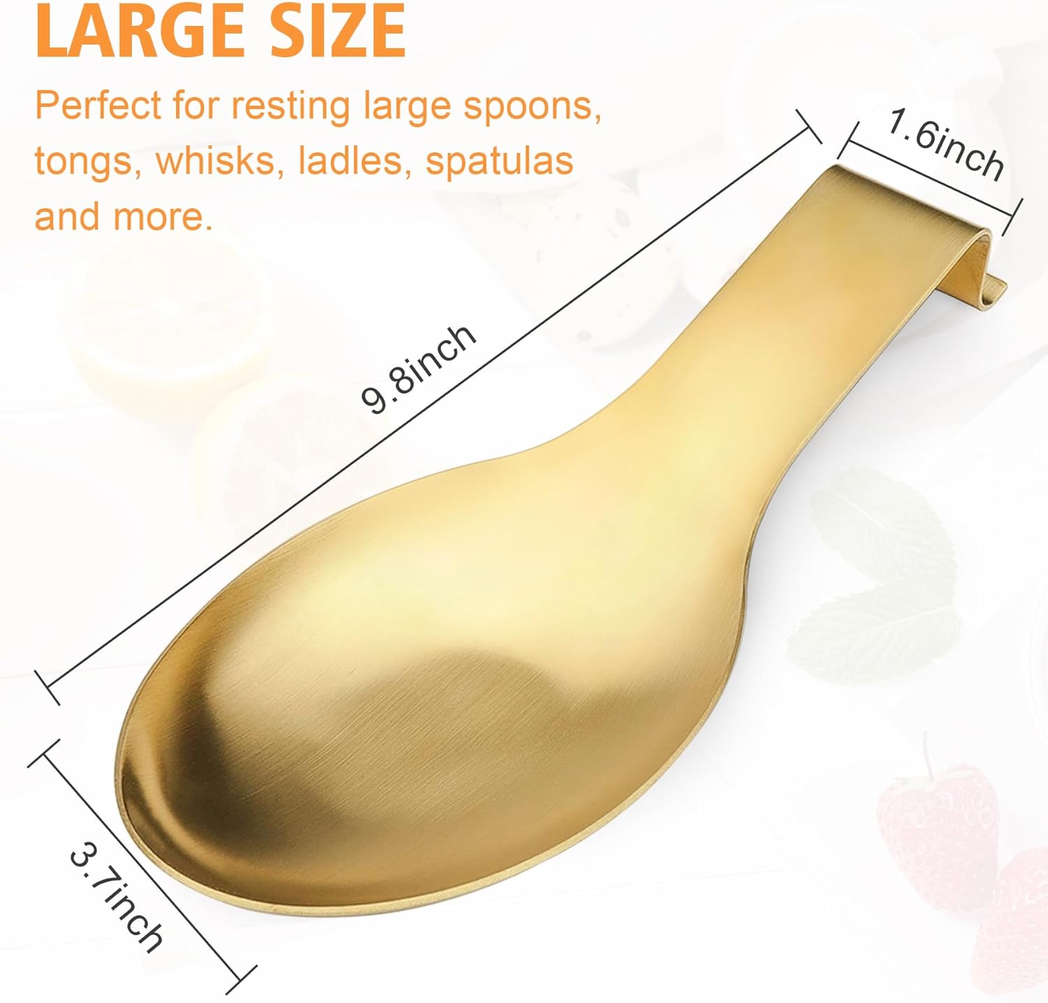 Crafted from high-quality 304 stainless steel, this durable spoon rest offers a brushed gold finish that complements any modern or contemporary kitchen decor. With its generous 9.8 x 3.7 inch surface area, it easily accommodates spatulas, ladles, whisks, and more—whether you're prepping breakfast or cooking a feast.
