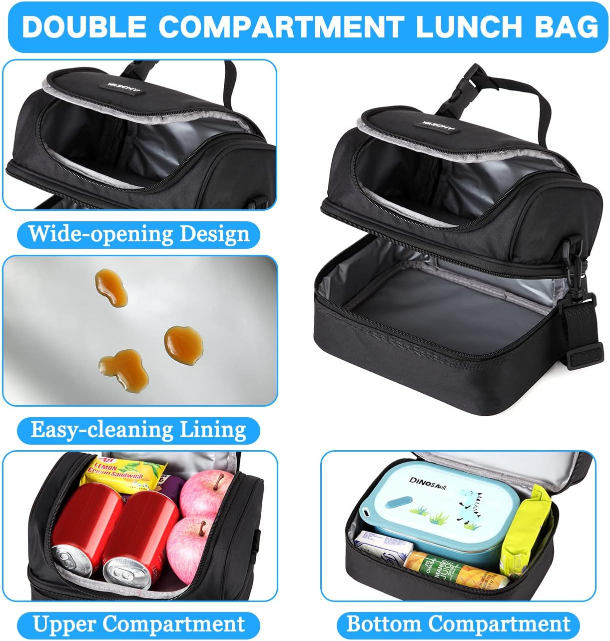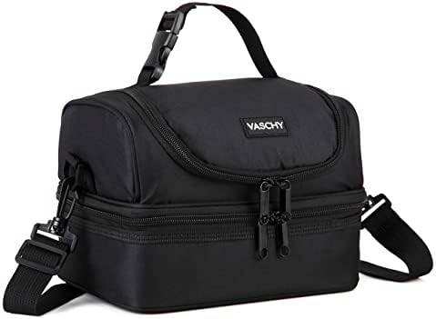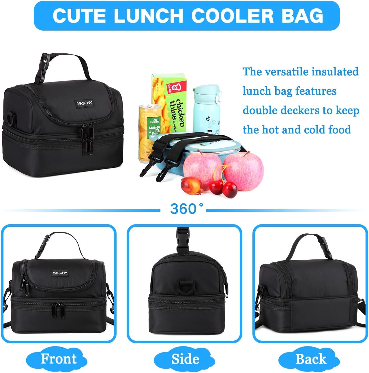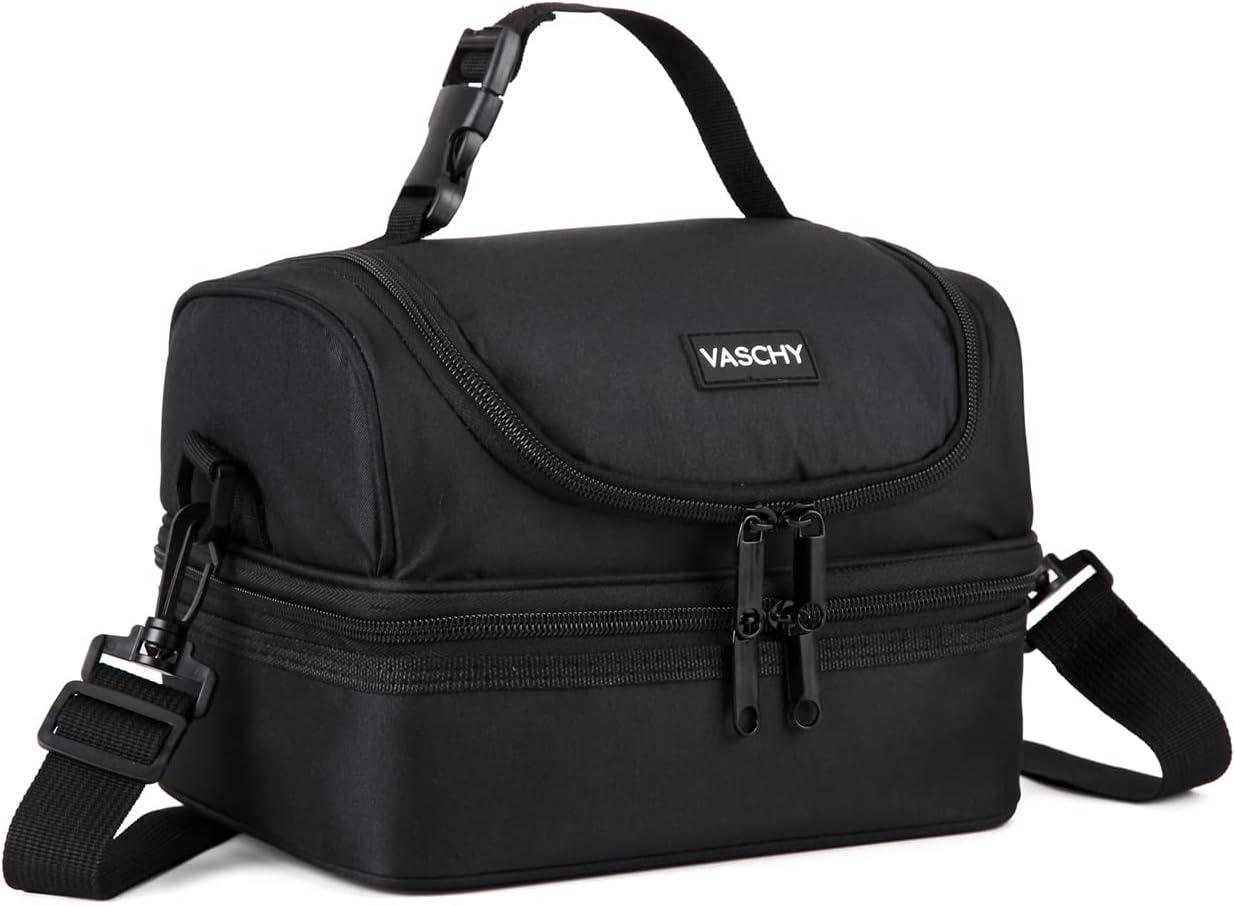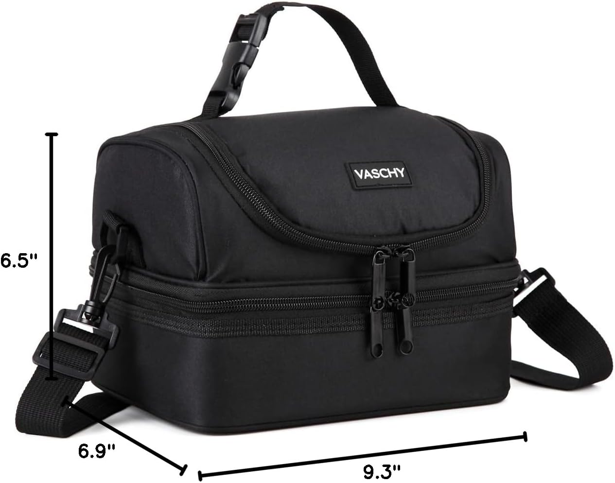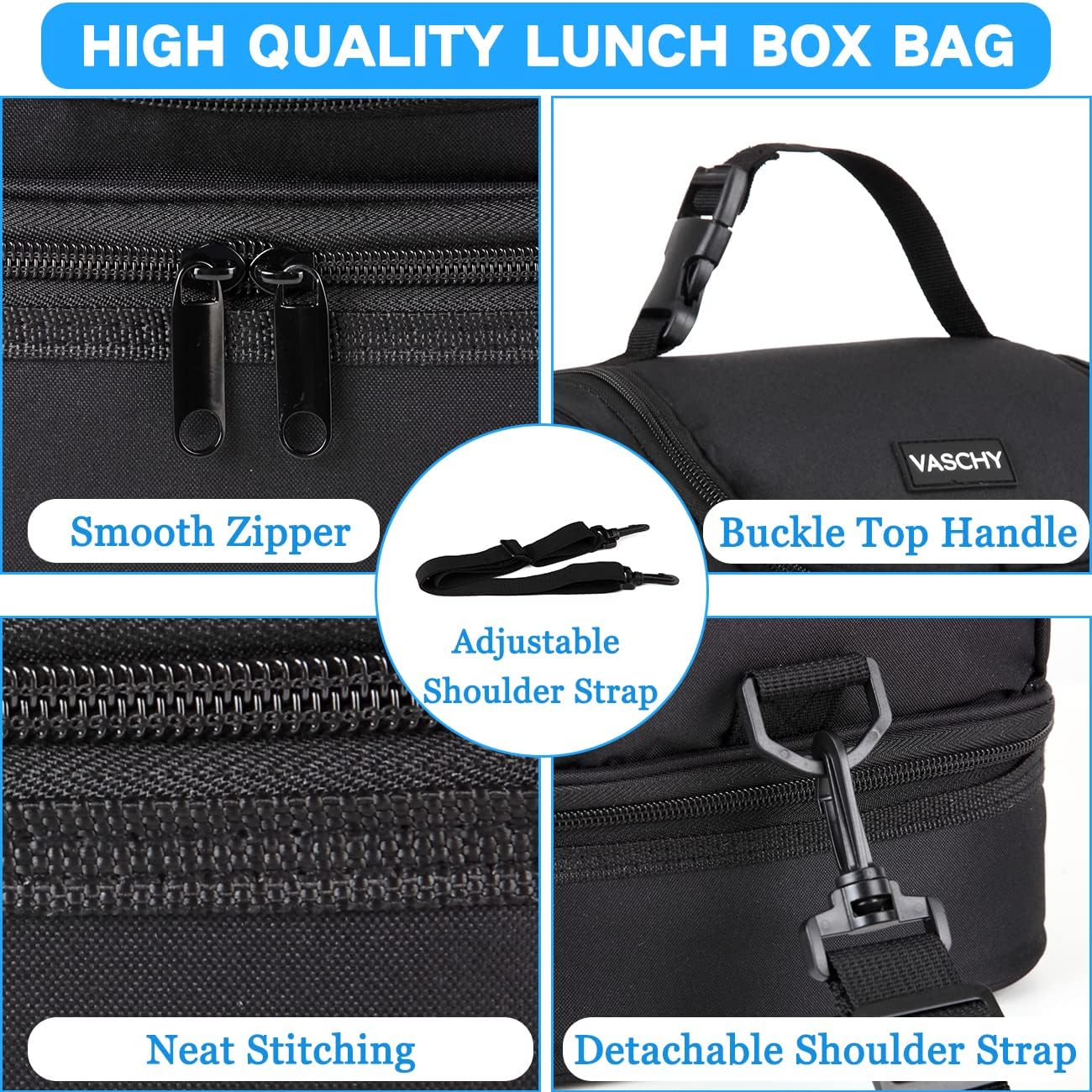 VASCHY Lunch Box Bag Men, Insulated Two Compartments Bento Cooler Bags for Adults/Women/Kids for School,Daycare,Kindergarten,Picnic Black