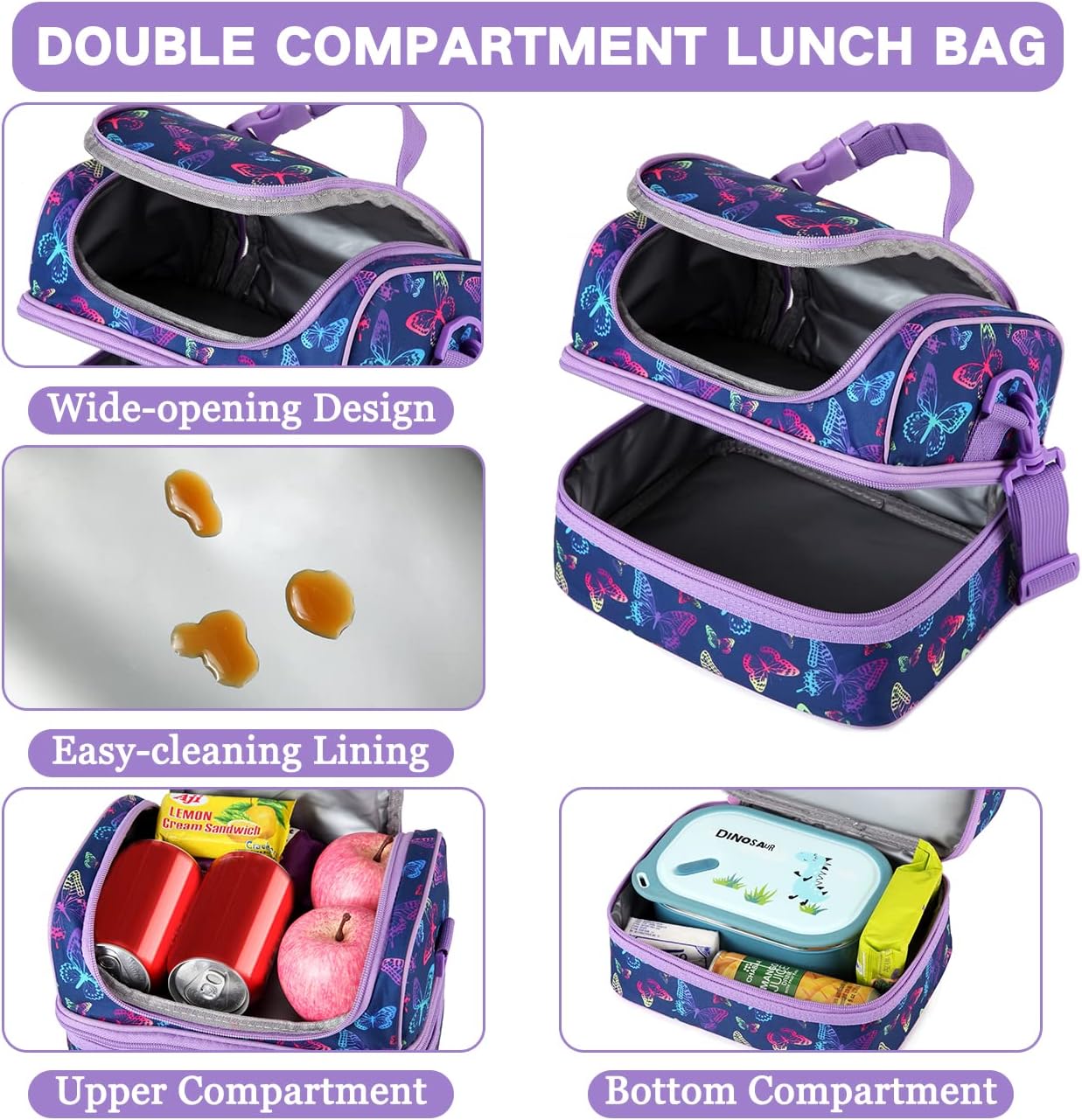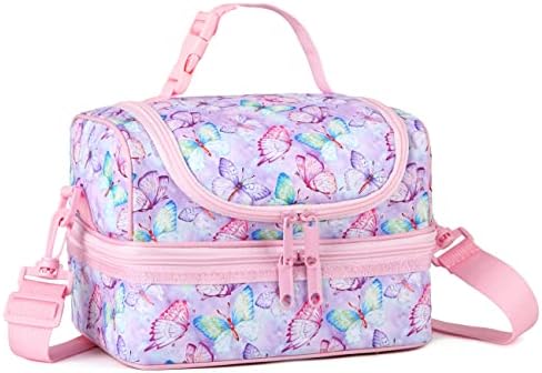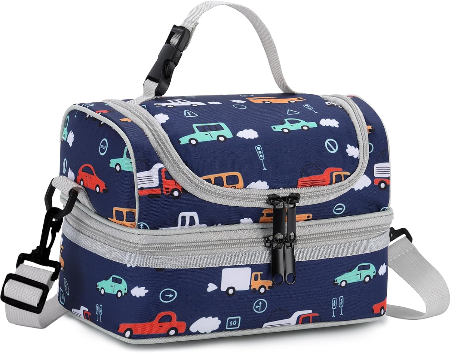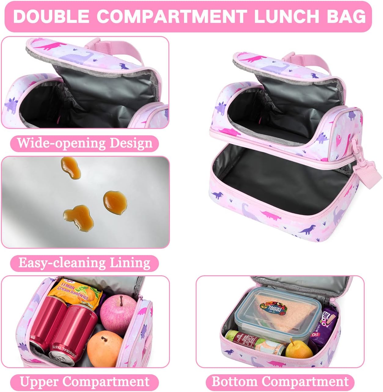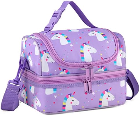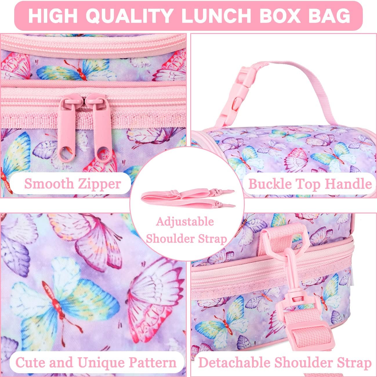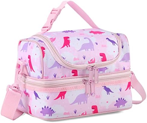 - 🖤SEPERATE COMPARTMENTS: The lunch container tote bag features double compartments,the bottom layer is for bento lunch boxes laying flat,the top compartment is for hot food and the small essentials.It has an insulated wipe-clean interior with plenty of space for sandwiches and snacks.With the detachable adjustable shoulder strap,your little one could hold the lunch bag by hand or by hands-free crossbody way.