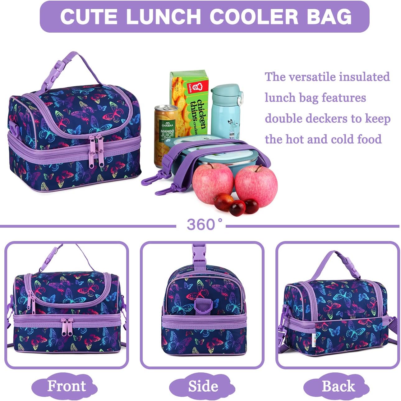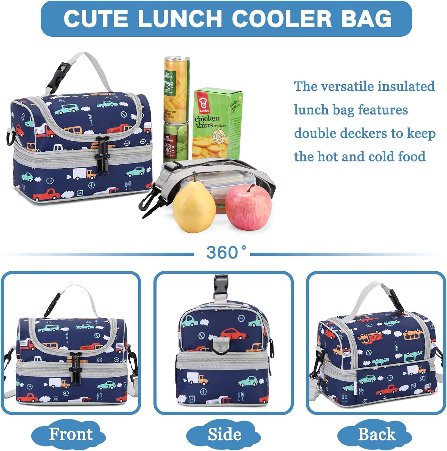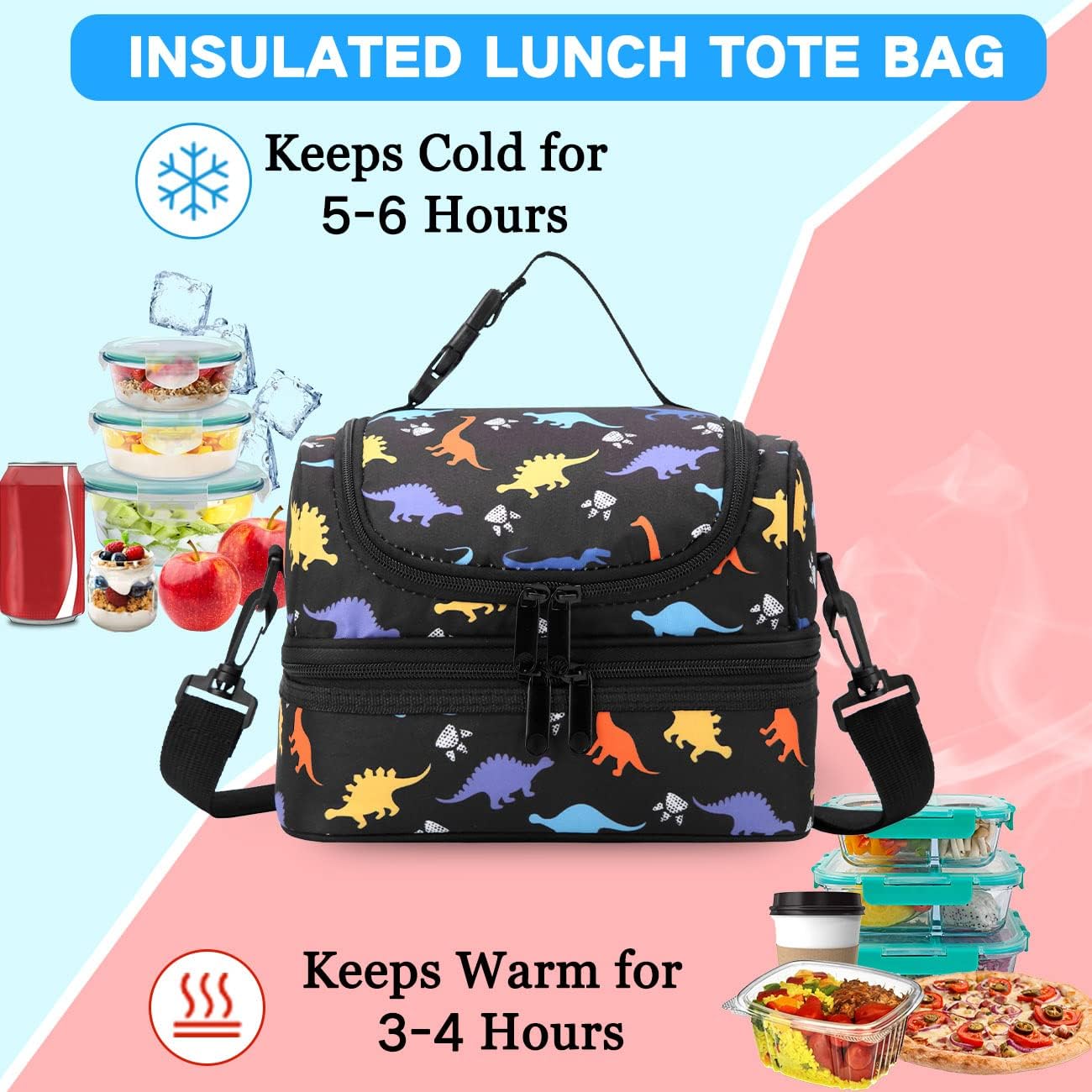 - 🖤INSULATED & WELL MADE: The insulated lunch bento container cooler bag is made from water-resistant polyester and features double deckers to keep the hot and cold food seperately. The insulating bag material inside keeps your lunch/food cool or warm for hours. It will keep food cool for 3-4 hours OR 5-6 hours with an ice pack. With the durable material and smooth zippers,the lunch bag could be used for a long time.