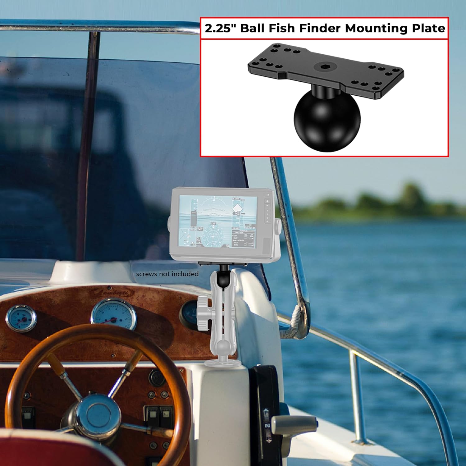 VAZESWIN 2.25" Ball Large Fish Finder Mount, Aluminum Alloy Universal Marine Electronic Mounting Plate for Garmin, Lowrance and More, Compatible with RAM Mounts D Size 2.25" Ball Double Socket Arm