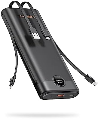 - VEEKTOMX Power Bank with Built-in Cables 10000mAh Portable Charger for iPhone Slim Fast Charge USB C Battery Pack Travel Essentials Powerbank Compatible with iPhone, Samsung, Android, etc