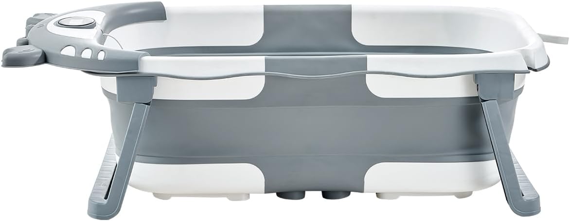 - Compact and Foldable: Our upgraded baby bathtub is easy to store in any corner, saving space and making it convenient to carry. It can be easily compressed and folded, and the supporting legs are detachable. There is also a silicone loop at the back for hanging.