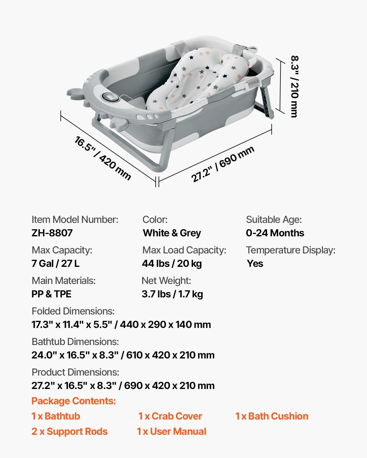 - Accompany Your Baby's Growth: This foldable bathtub is specifically designed to accompany your baby, suitable for babies aged 0-24 months with a maximum weight capacity of 44.1 lbs / 20 kg. It features a cute crab design that adds fun to your baby’s bath time.