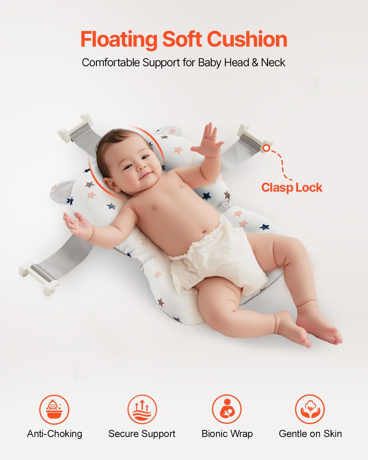 - Detachable Cushion: The removable hanging cushion provides optimal support for your baby's delicate head and neck during the first 0-12 months, helping avoid water choking. The straps are secured with buckles on both sides of the bathtub, and the length is adjustable.