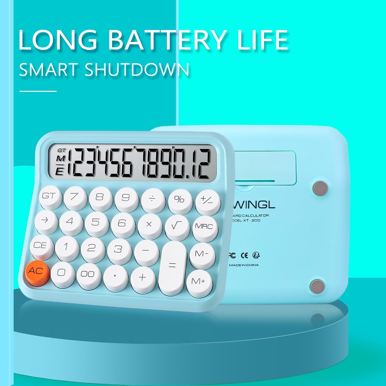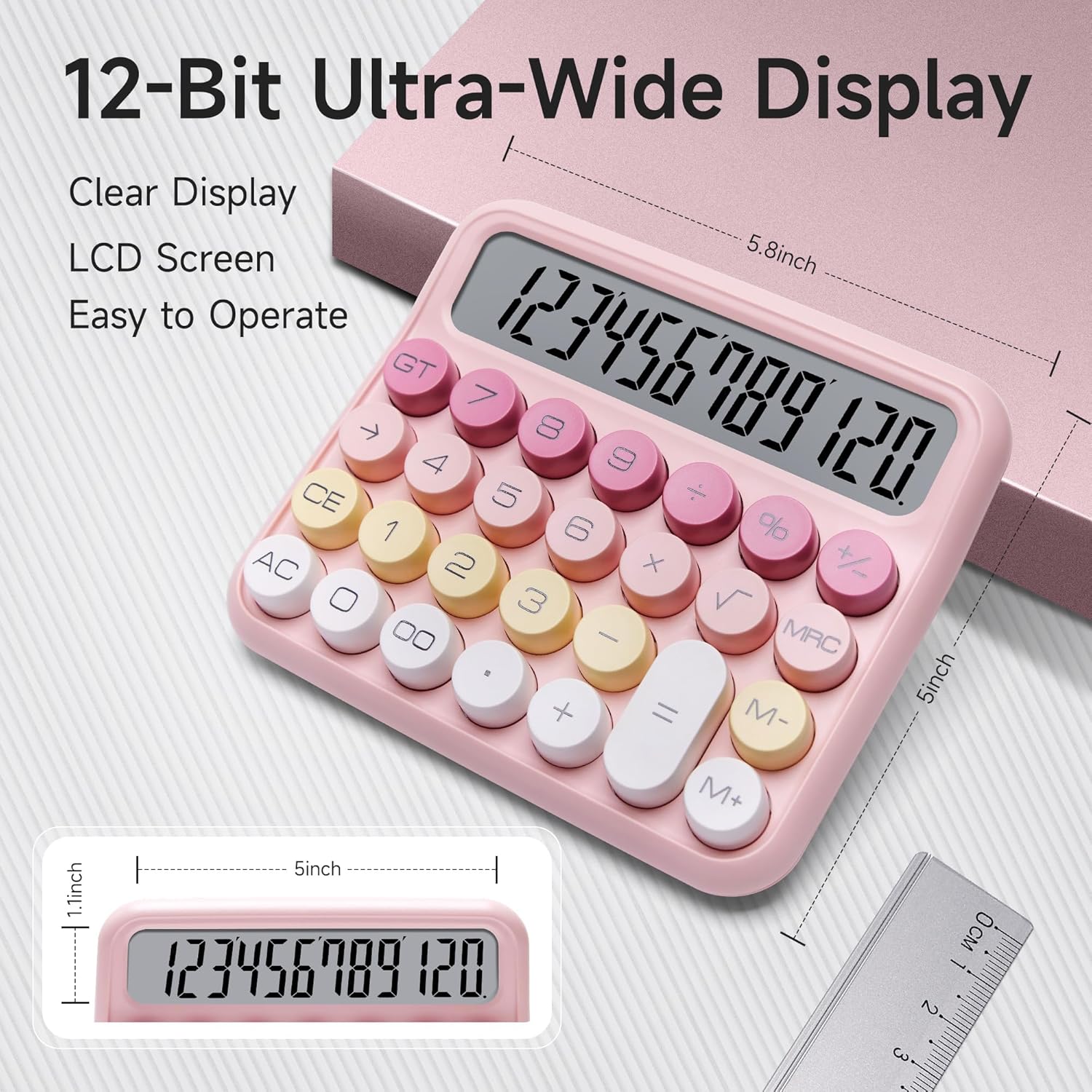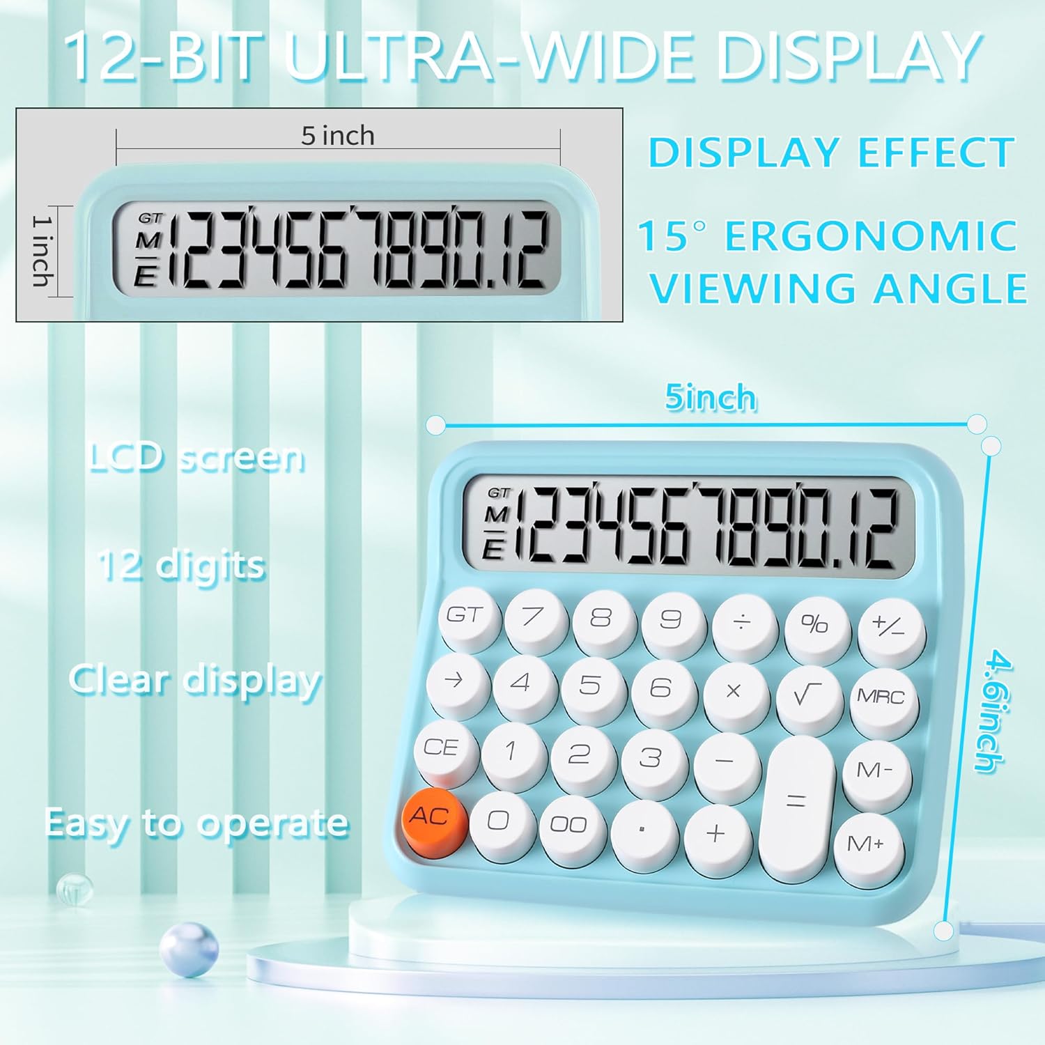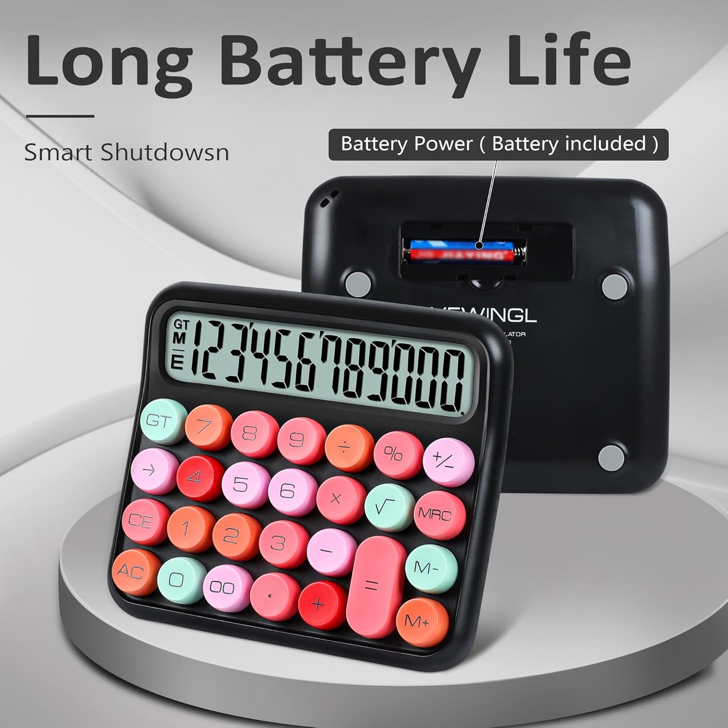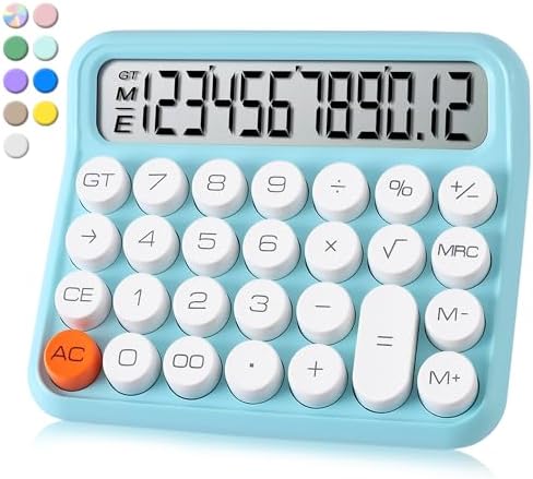 VEWINGL Mechanical Switch Calculator, 12 Digit Large LCD Display and Buttons, Great for Everyday Life and Basic Office Work, with Battery