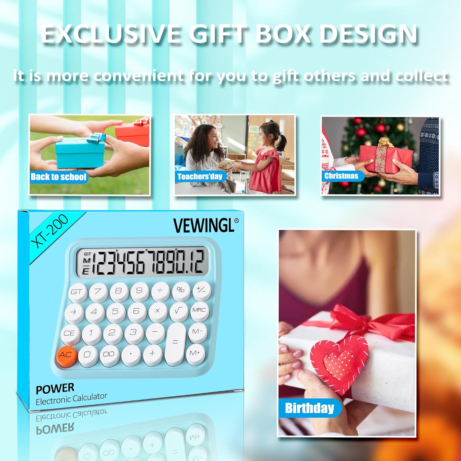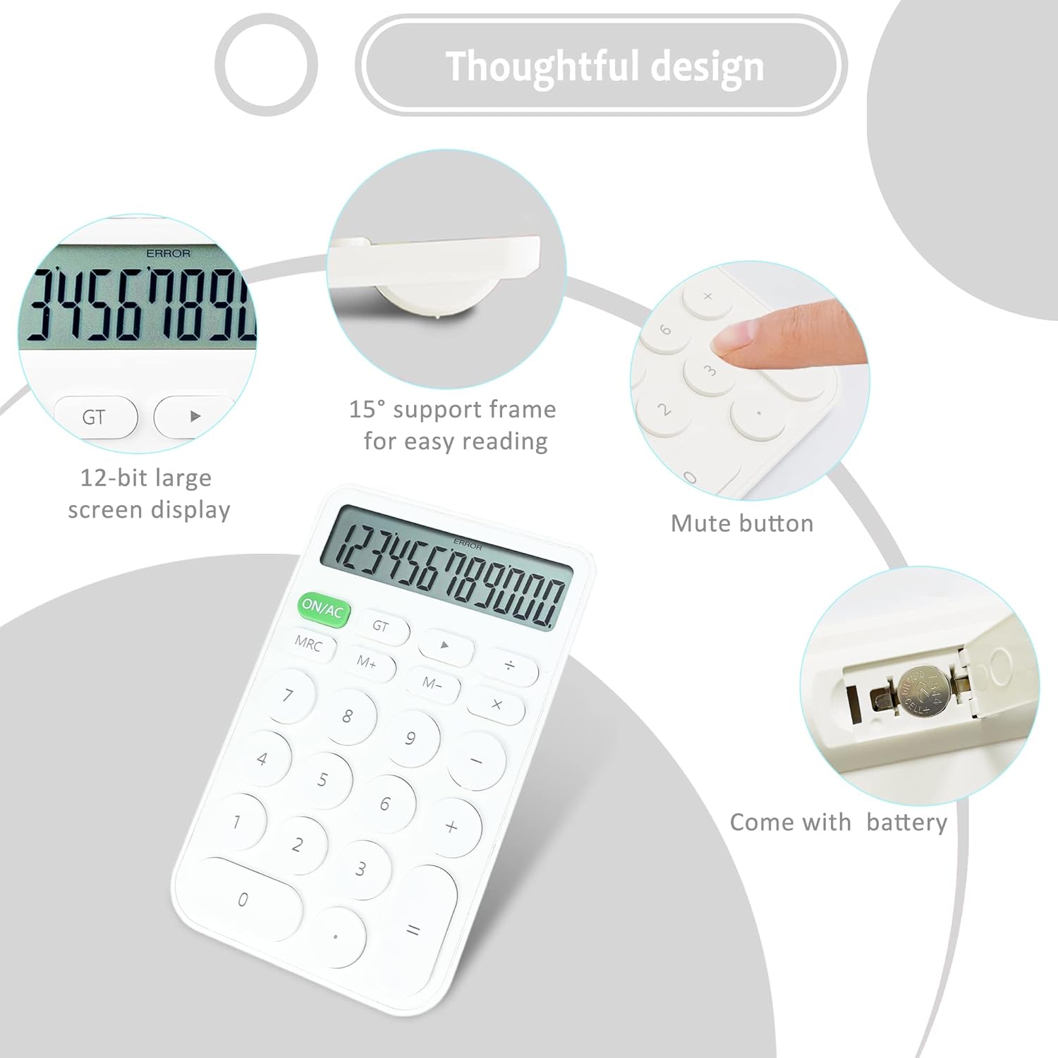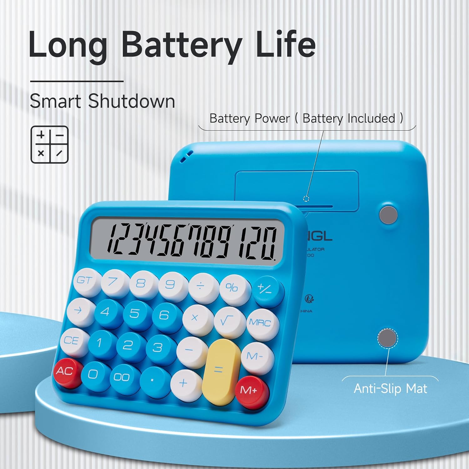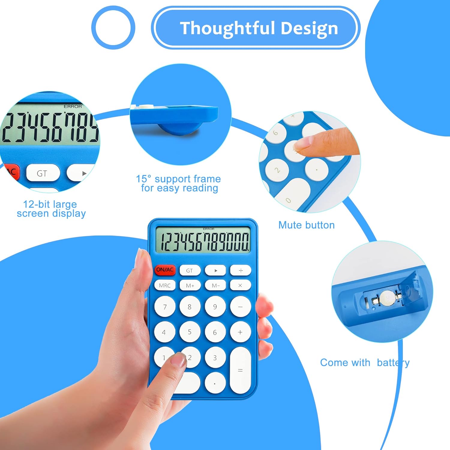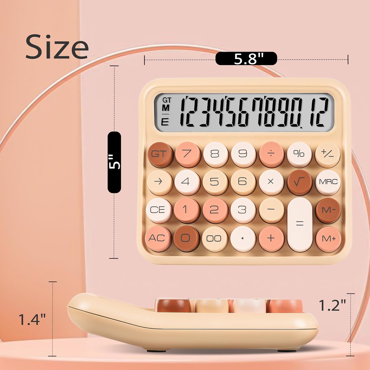 VEWINGL Mechanical Switch Calculator, 12 Digit Large LCD Display and Buttons, Great for Everyday Life and Basic Office Work, with Battery