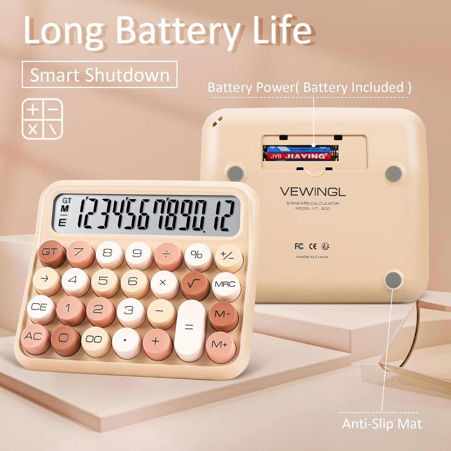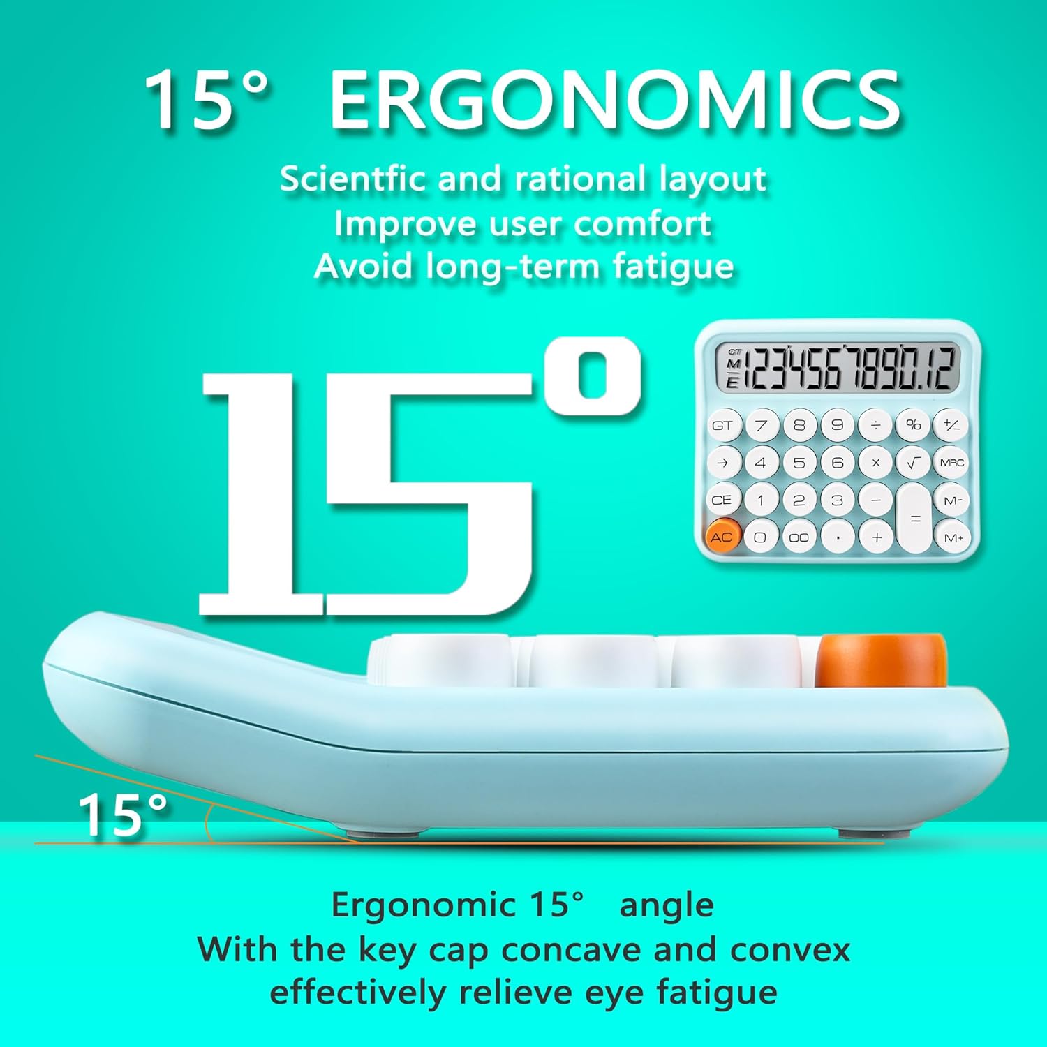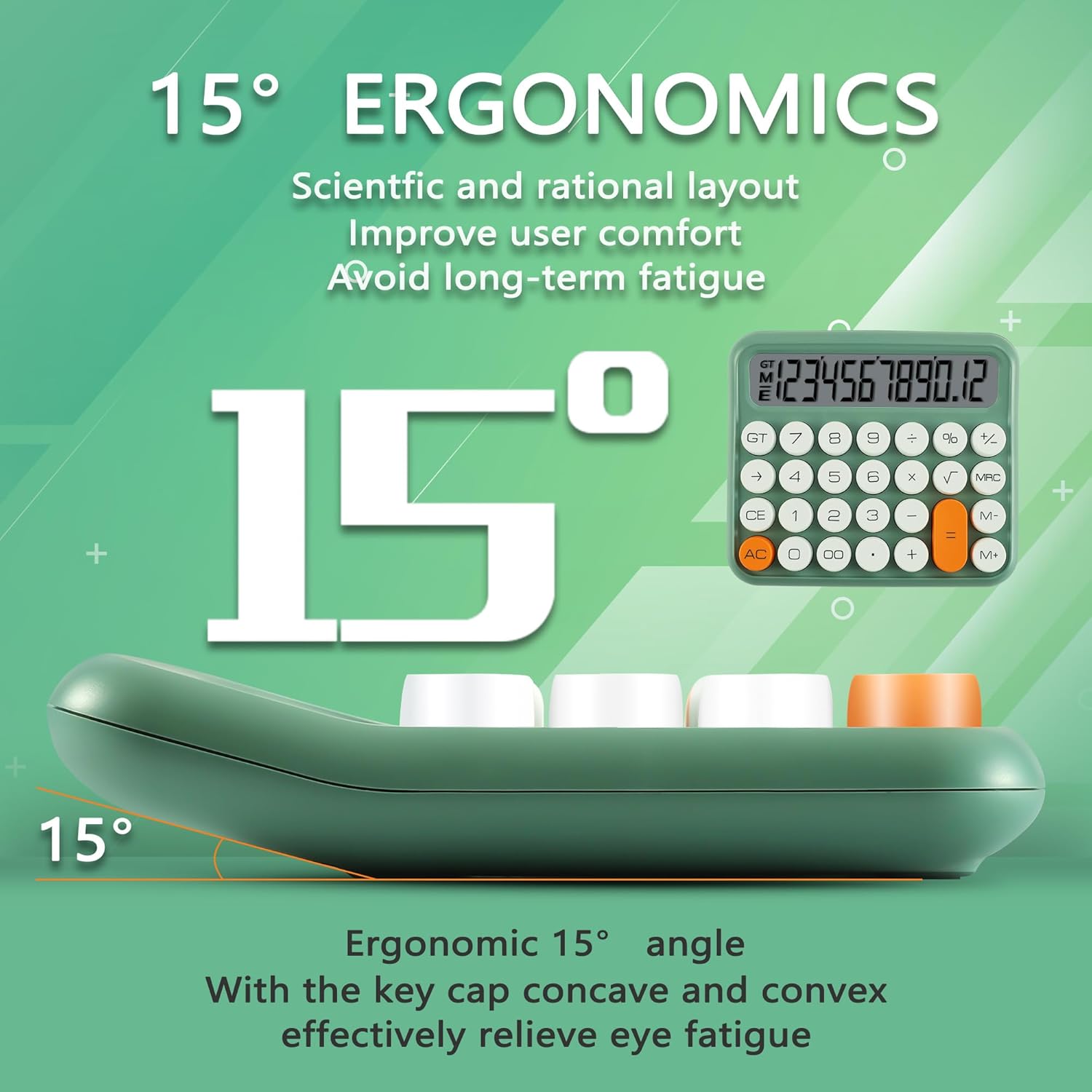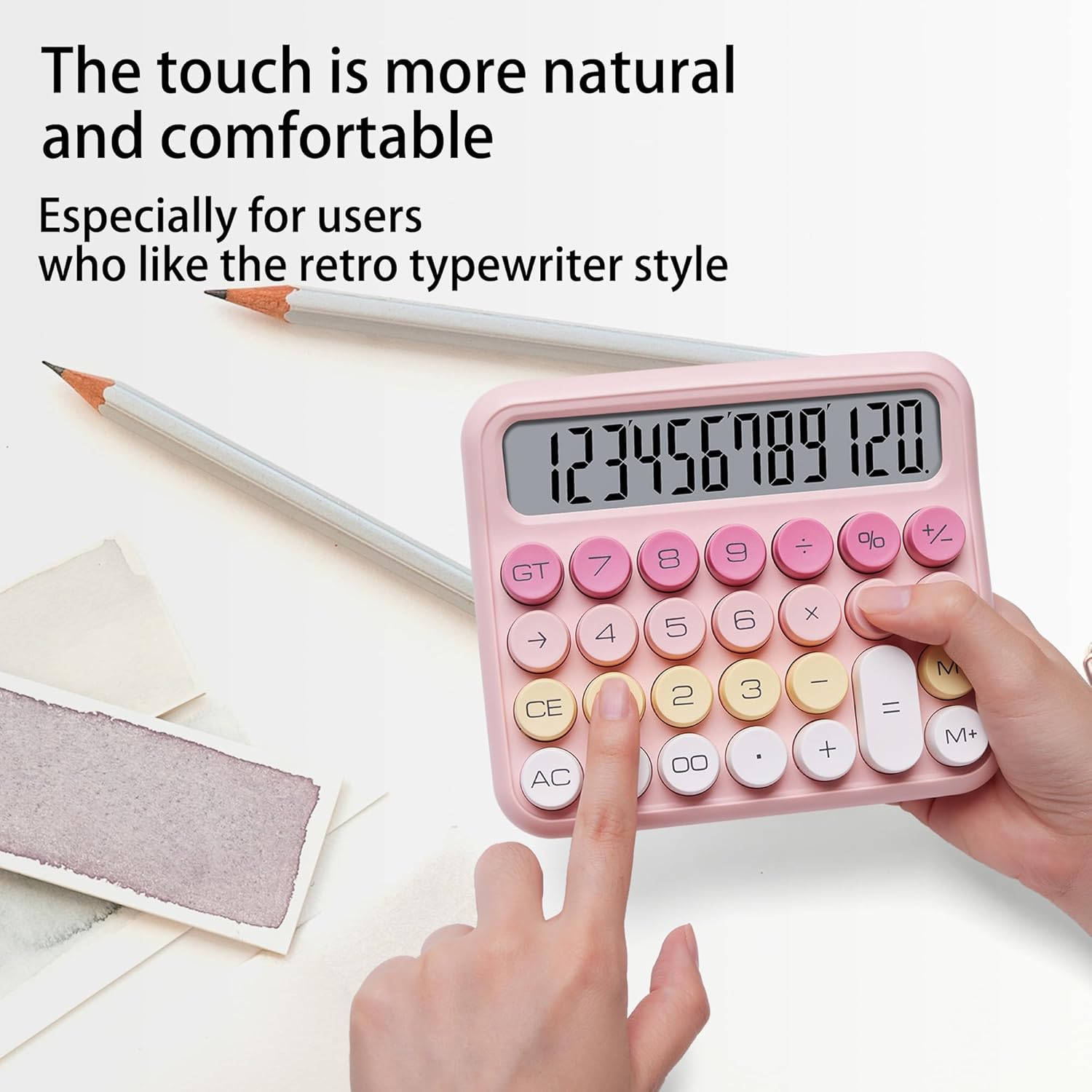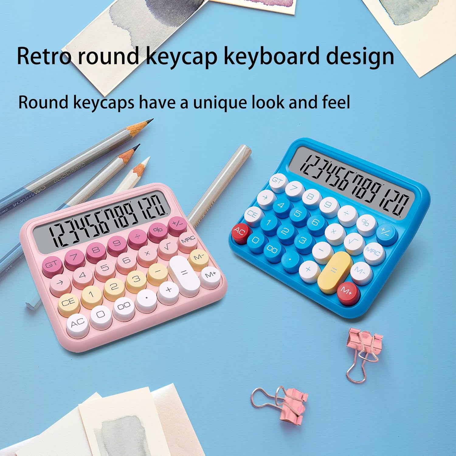 VEWINGL Mechanical Switch Calculator, 12 Digit Large LCD Display and Buttons, Great for Everyday Life and Basic Office Work, with Battery