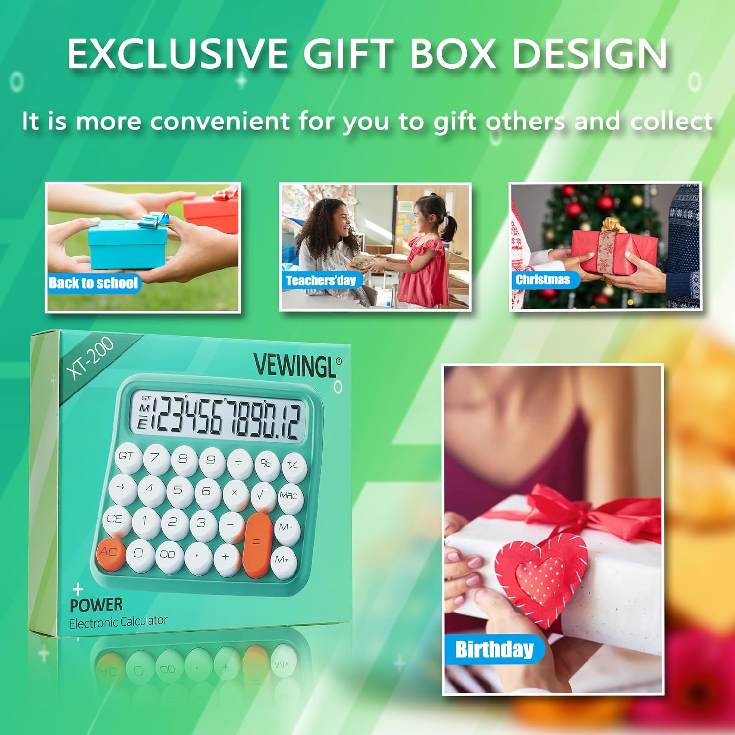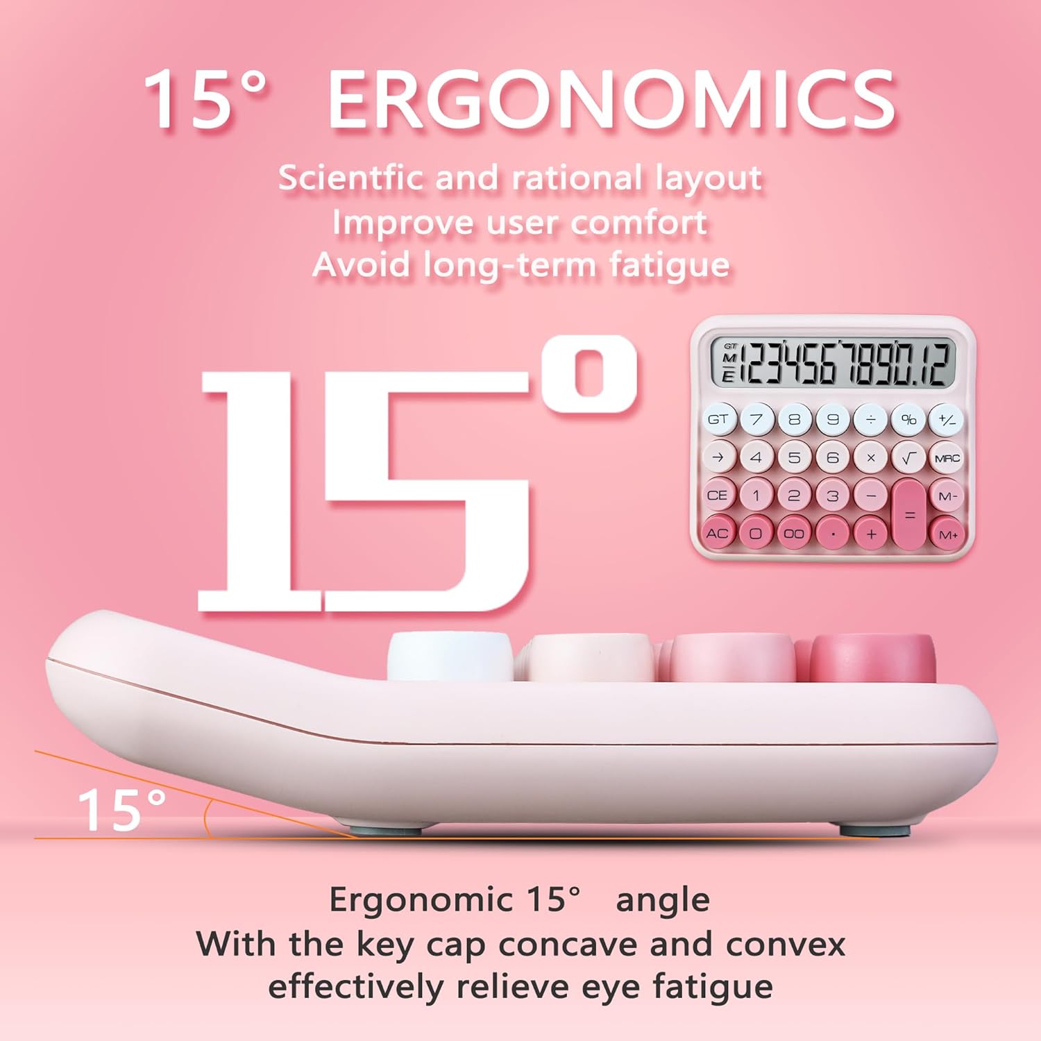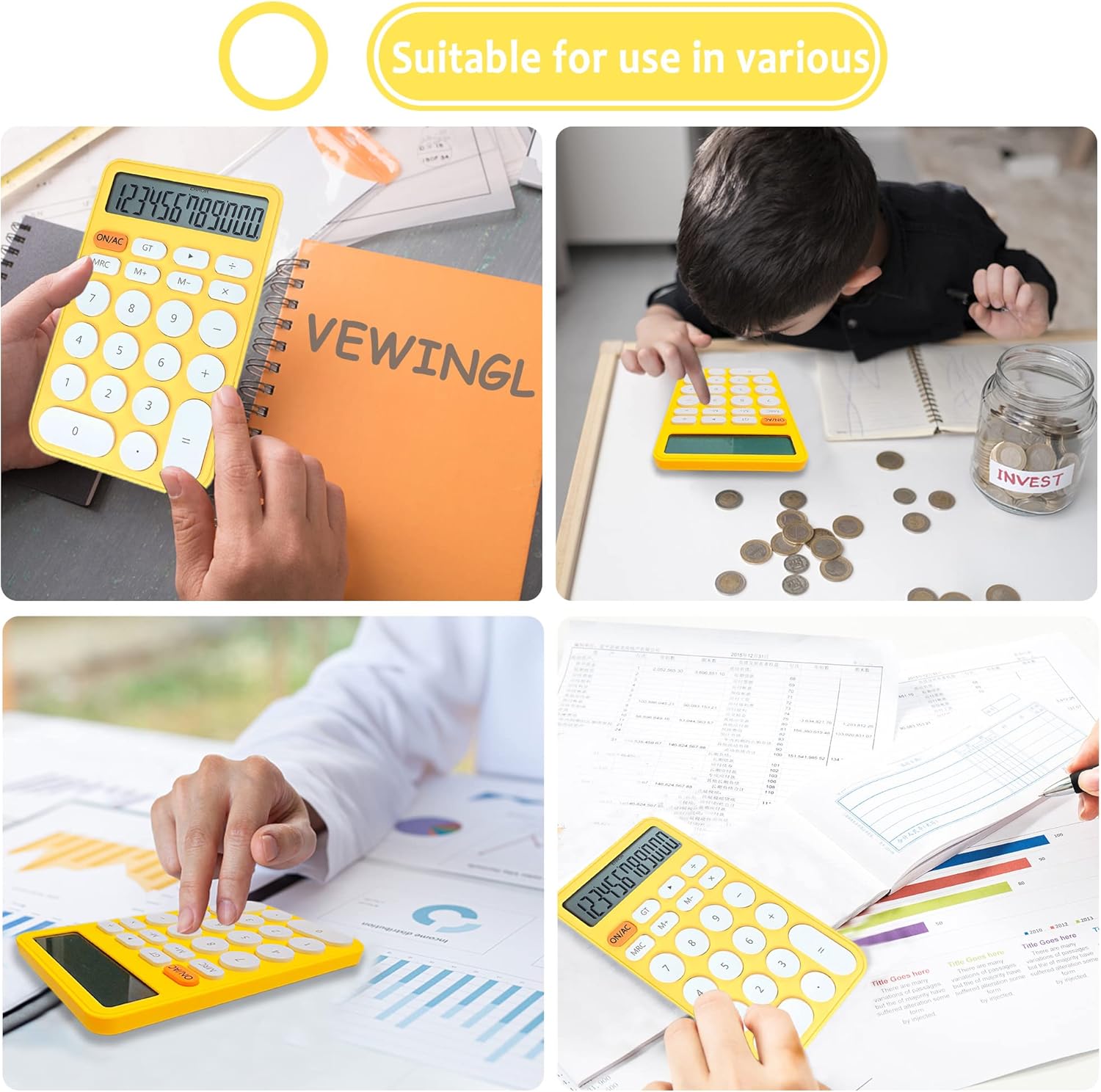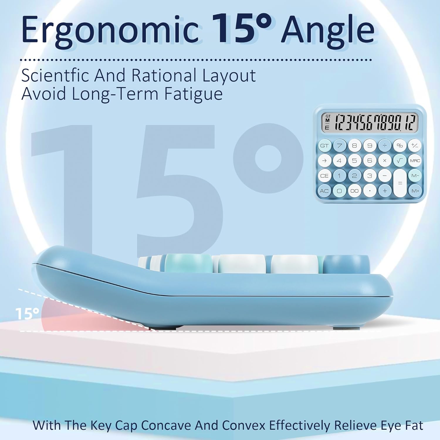 VEWINGL Mechanical Switch Calculator, 12 Digit Large LCD Display and Buttons, Great for Everyday Life and Basic Office Work, with Battery