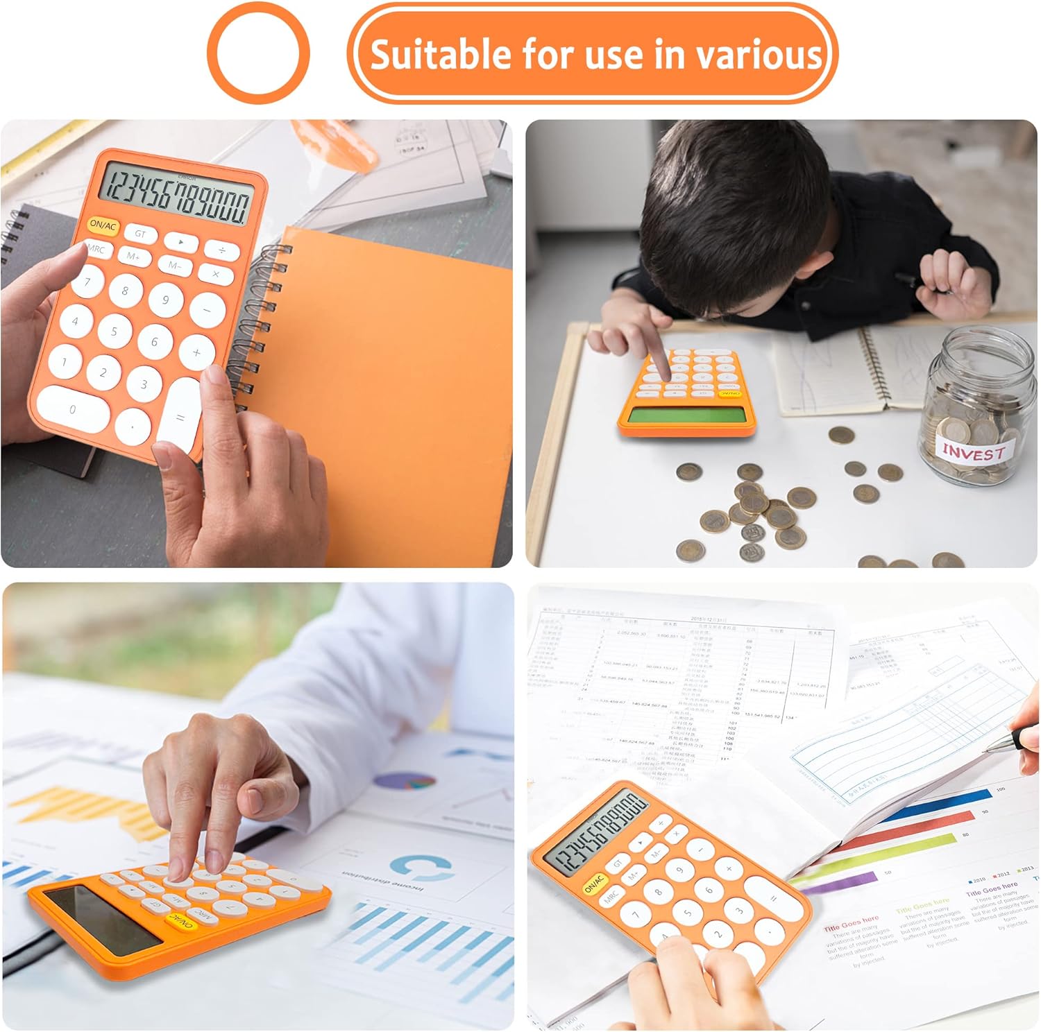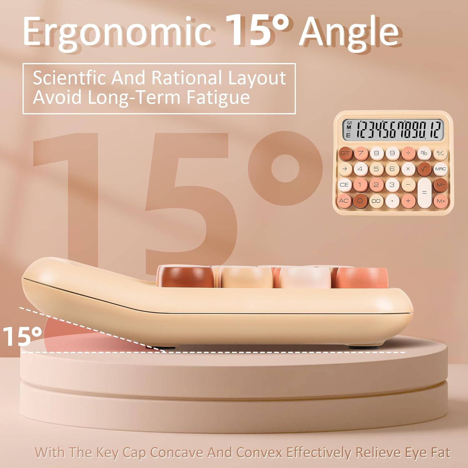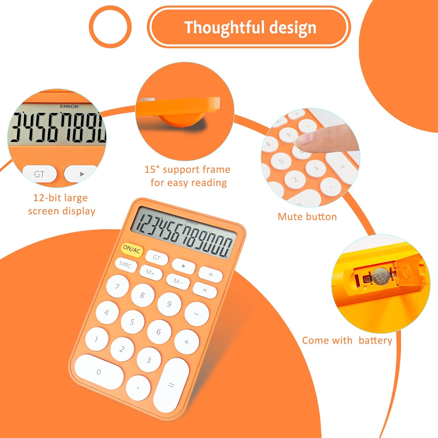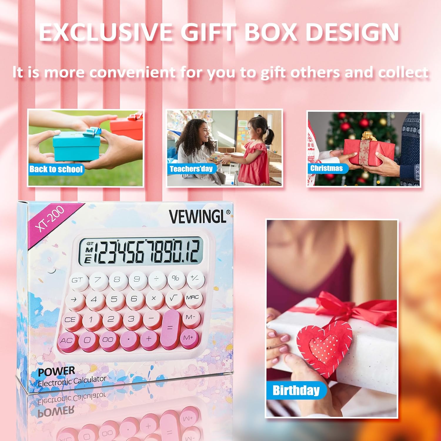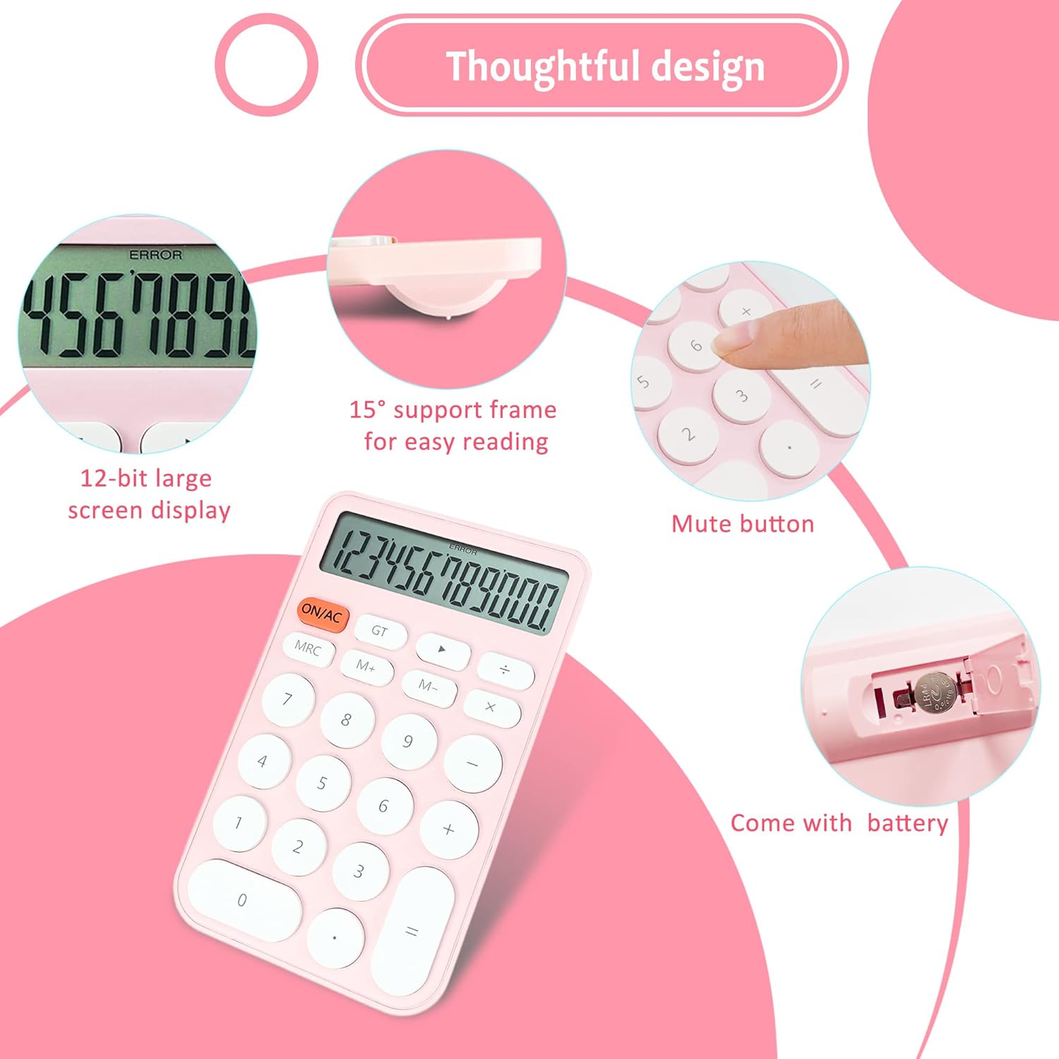 VEWINGL Mechanical Switch Calculator, 12 Digit Large LCD Display and Buttons, Great for Everyday Life and Basic Office Work, with Battery