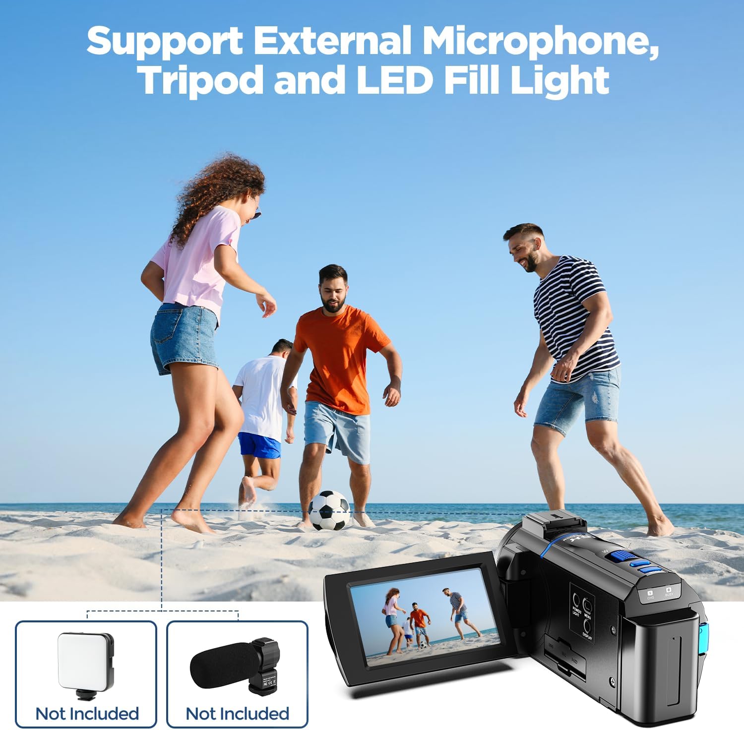 • IR Night Vision & Rechargeable Batteries: The video blog camera has the newly upgraded IR night vision function and anti-shake, allowing you to shoot more stable, clear black-and-white photos even in dim environments. This video blog camera is equipped with one 1800mAh battery. After a full charge, you can record continuously for about 90 minutes. The 4K camera also supports recording while charging, which is convenient for recording long videos at any time without worrying about running out of power. Suitable for travel, meetings, parties and weddings