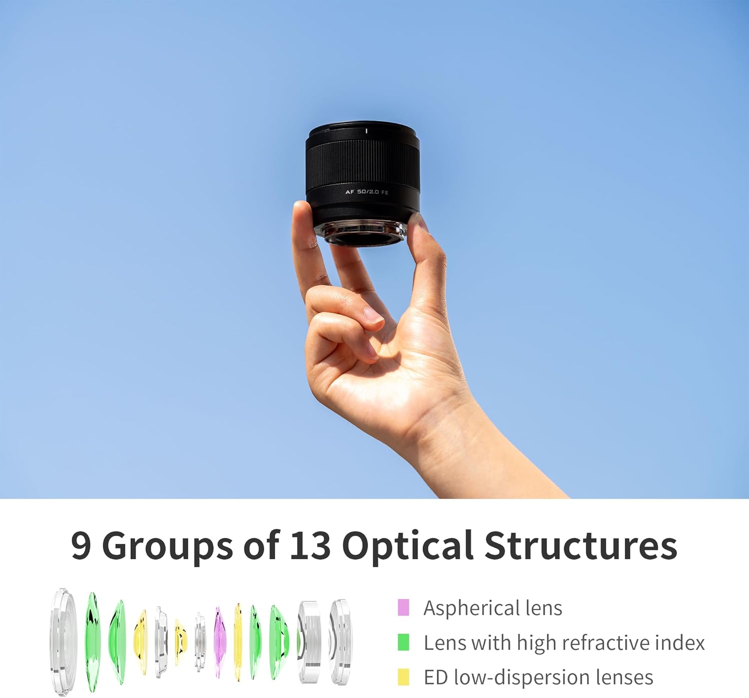 • Lightweight and compact:the AF50mm F2.0 Air using specially designed lightweight materials and lightweight design, it is particularly lightweight, with a volume.Efficient and comfortable operation, more stable handheld shooting.