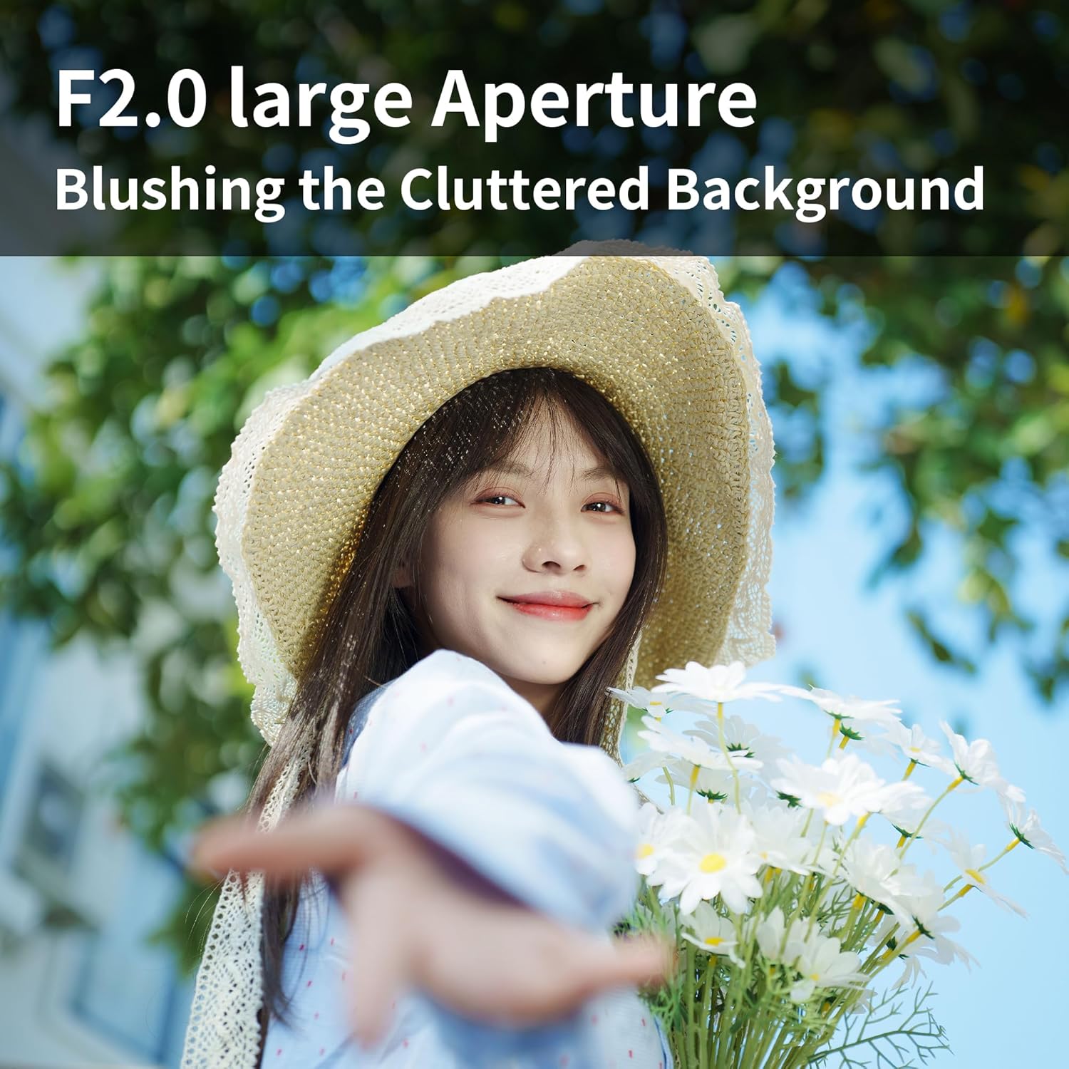 • F2.0 large aperture:9 aperture blades, beautiful and dreamy, creating artistic expression; The large aperture blurs the cluttered background, effectively highlighting the subject and making it easy to get out of the circle.