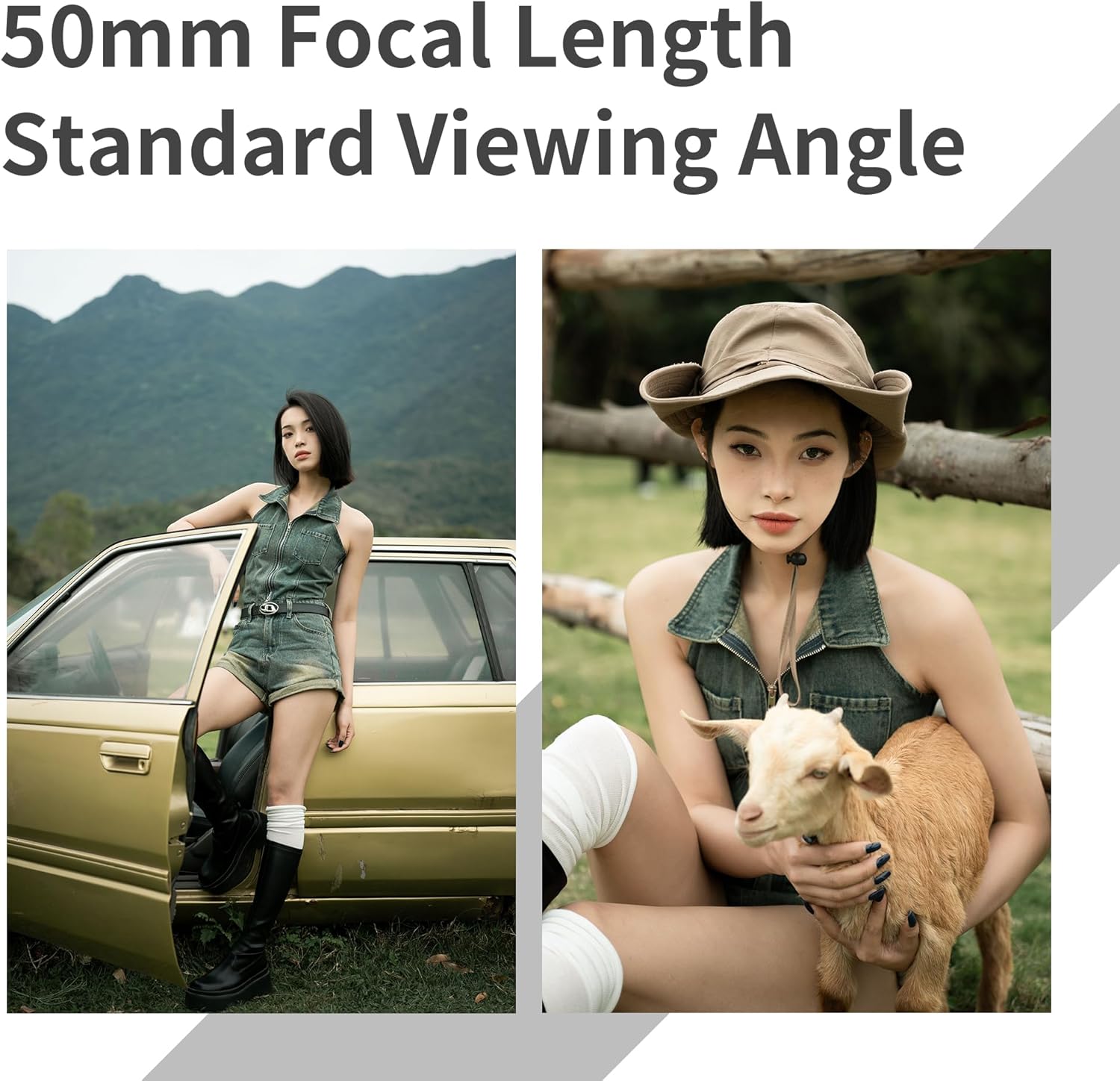 • 50mm standard viewing angle:50mm focal length, presenting natural and realistic images. Whether it's portrait, street photography, scenery, or daily recording, it can be easily handled, making it the omnipotent lens in the hands of photographers.