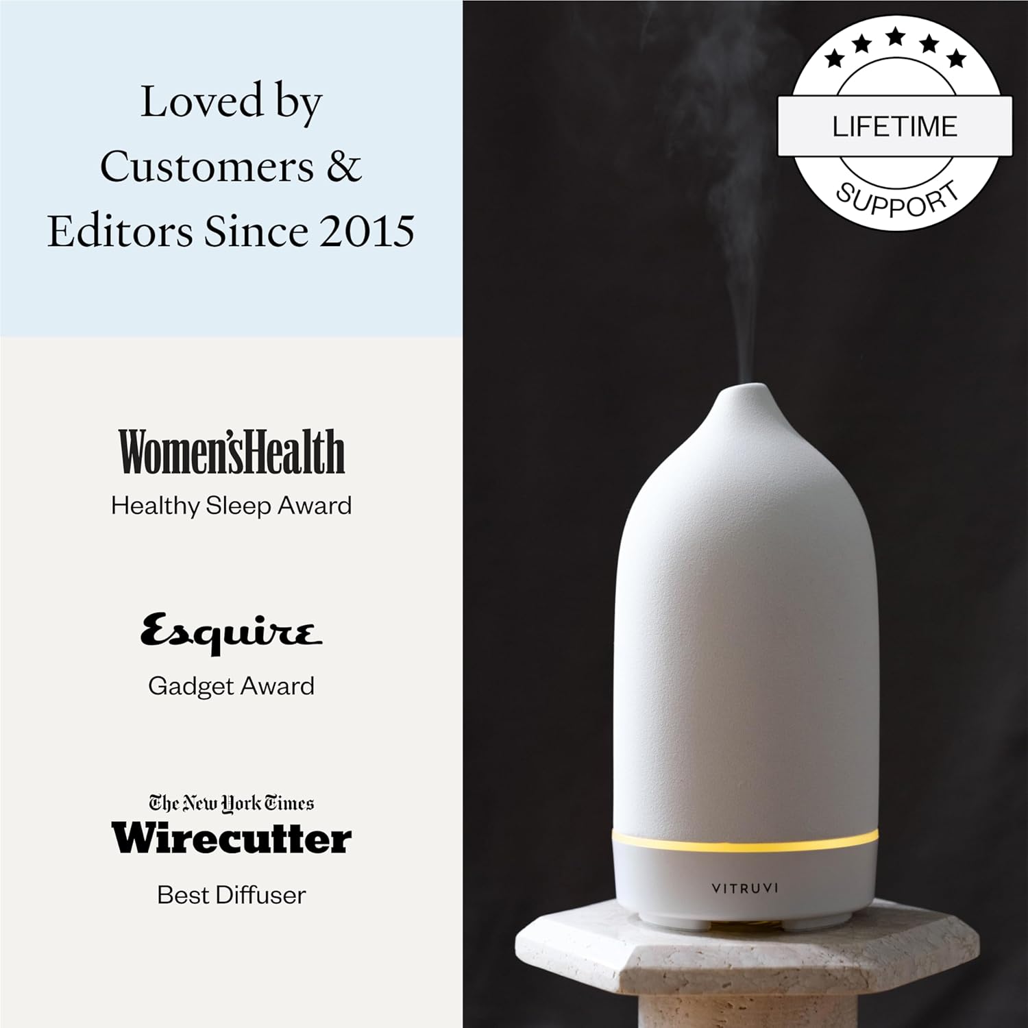Vitruvi Stone Diffuser, Ceramic Ultrasonic Essential Oil Diffuser for Aromatherapy | Ceramic Diffuser, Diffusers for Home, Oil Diffuser, Housewarming Gift | White, 90ml Capacity