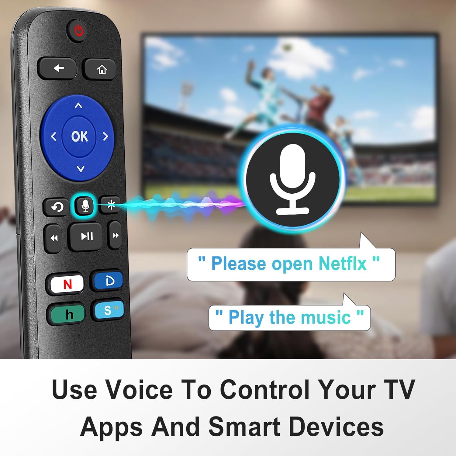 【4 Shortcut Buttons】Dedicated buttons for N jump to NETFLIX, H jump to HUlU, D jump to Disney+, S jump to Sling , you can quickly launch and control content on these platforms with just one tap.