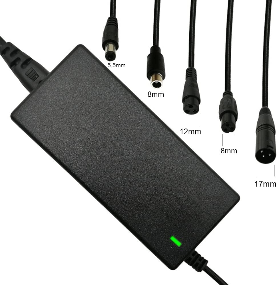 Wanhirus 42V 2A Scooter Charger 5 Plugs Universal for 36V Lithium Battery, Pack DC 5.5 * 2.1 with 8mm 3 Prong Connector /12mm 3 Prong Connector /8mm RCA Connector/ 3-Pin Male XLR Connector
