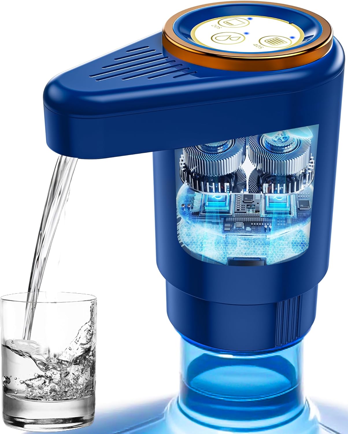 Water Dispenser, Portable Electric Water Bottle Pump Rechargeable for 5 Gallon Bottles, USB-C Charging for Home Kitchen Room Camping, Blue