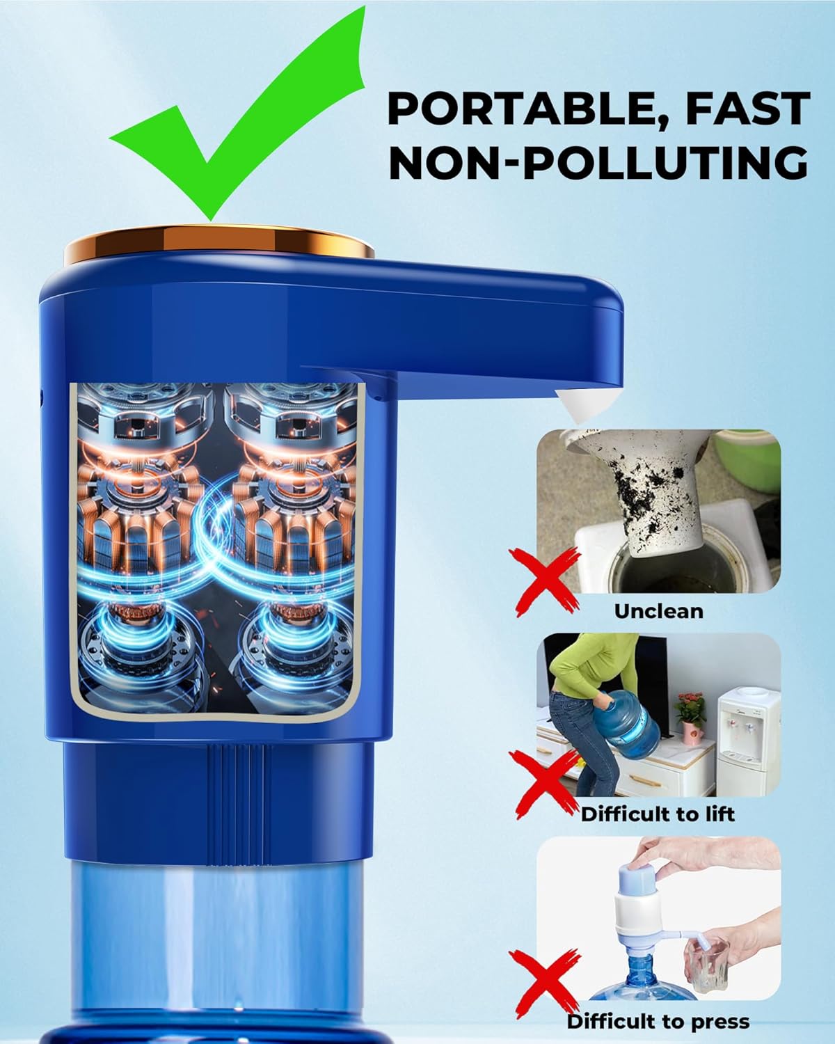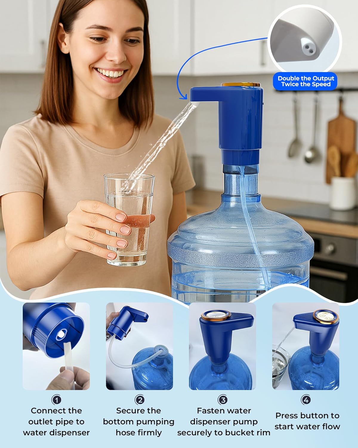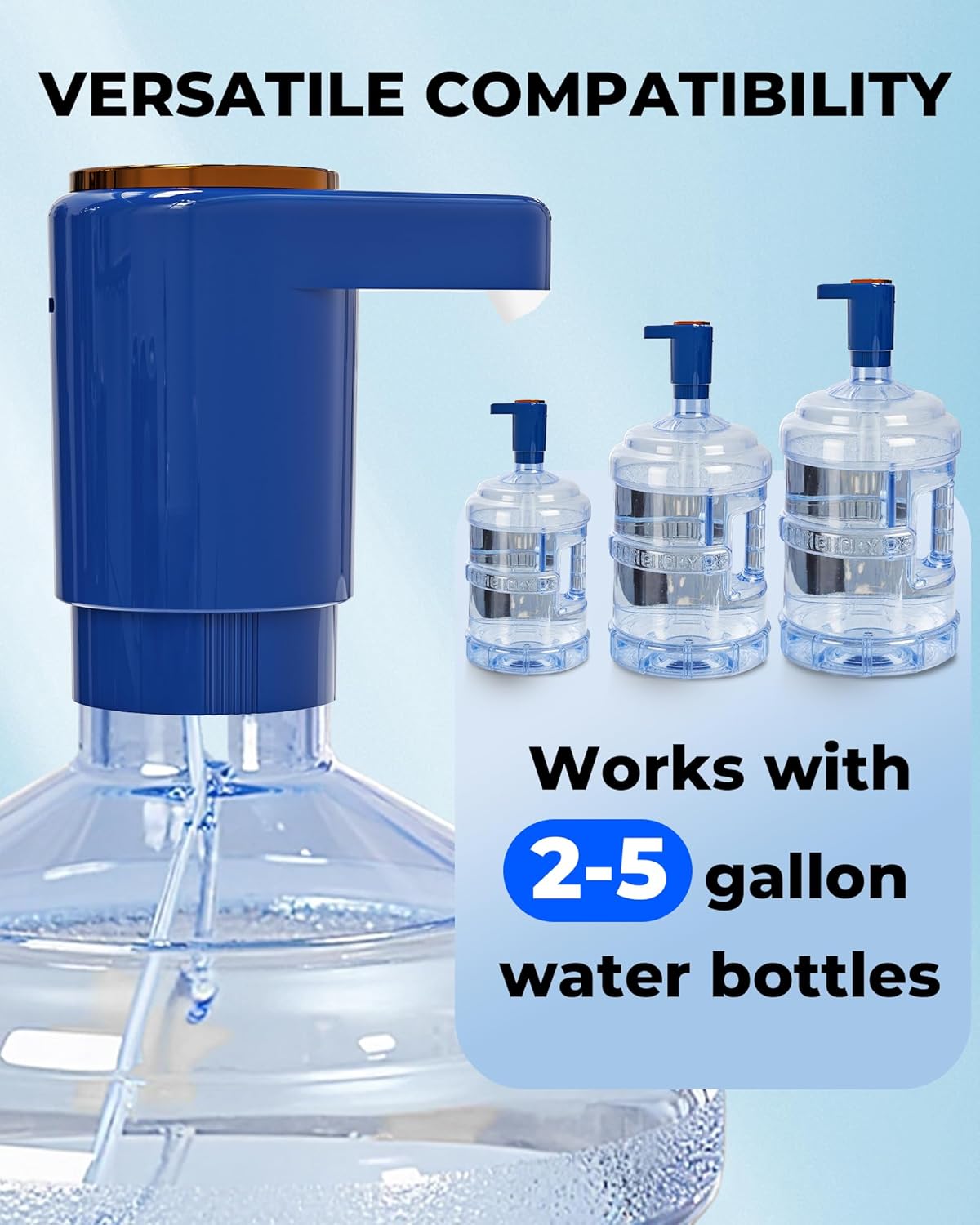 🧴【Universal Fit for 2–5 Gallon Bottles】 Designed to fit most standard 2 to 5-gallon bottles, this water pump attaches securely without removing the bottle cap. Compatible with most popular jugs, it’s an ideal solution for effortless hydration with any water pump for water jug or distributeur d'eau.
