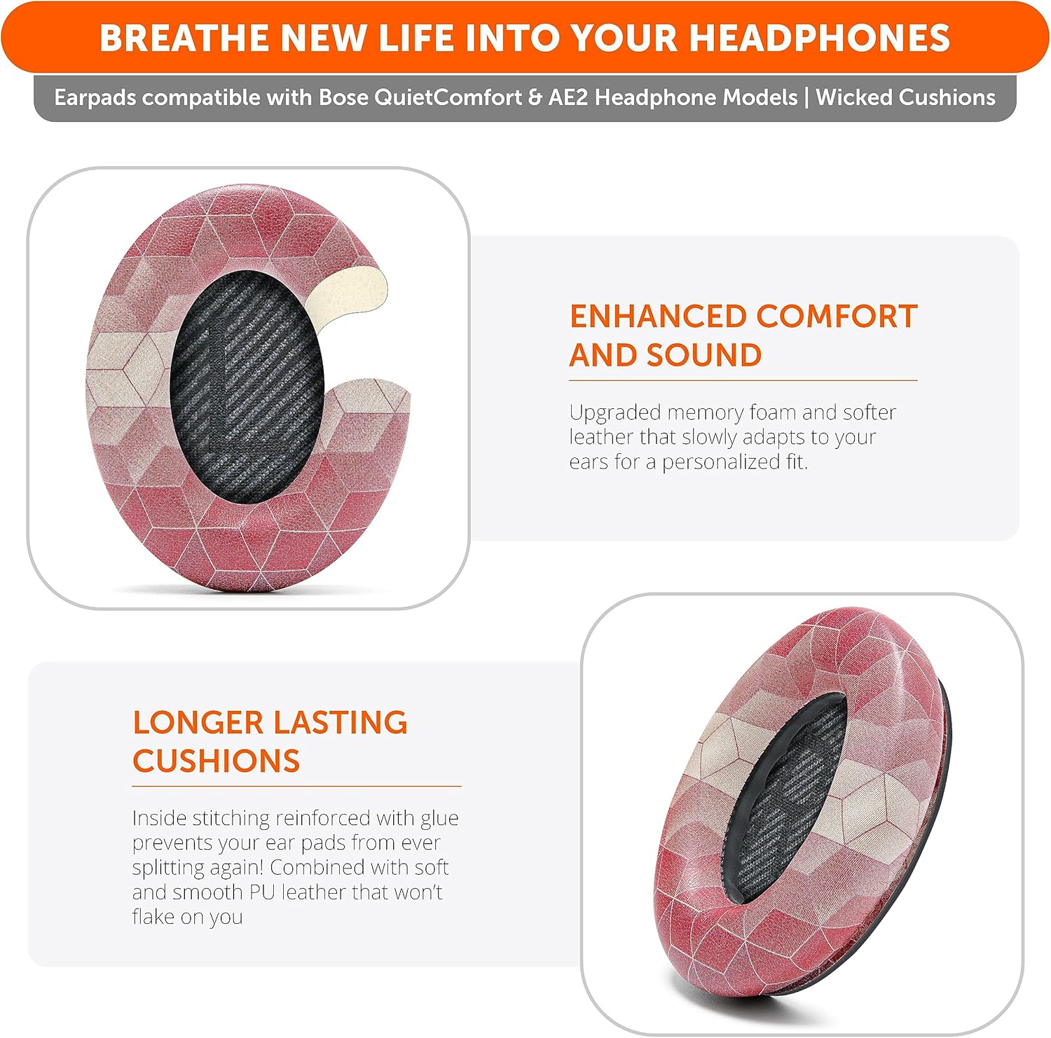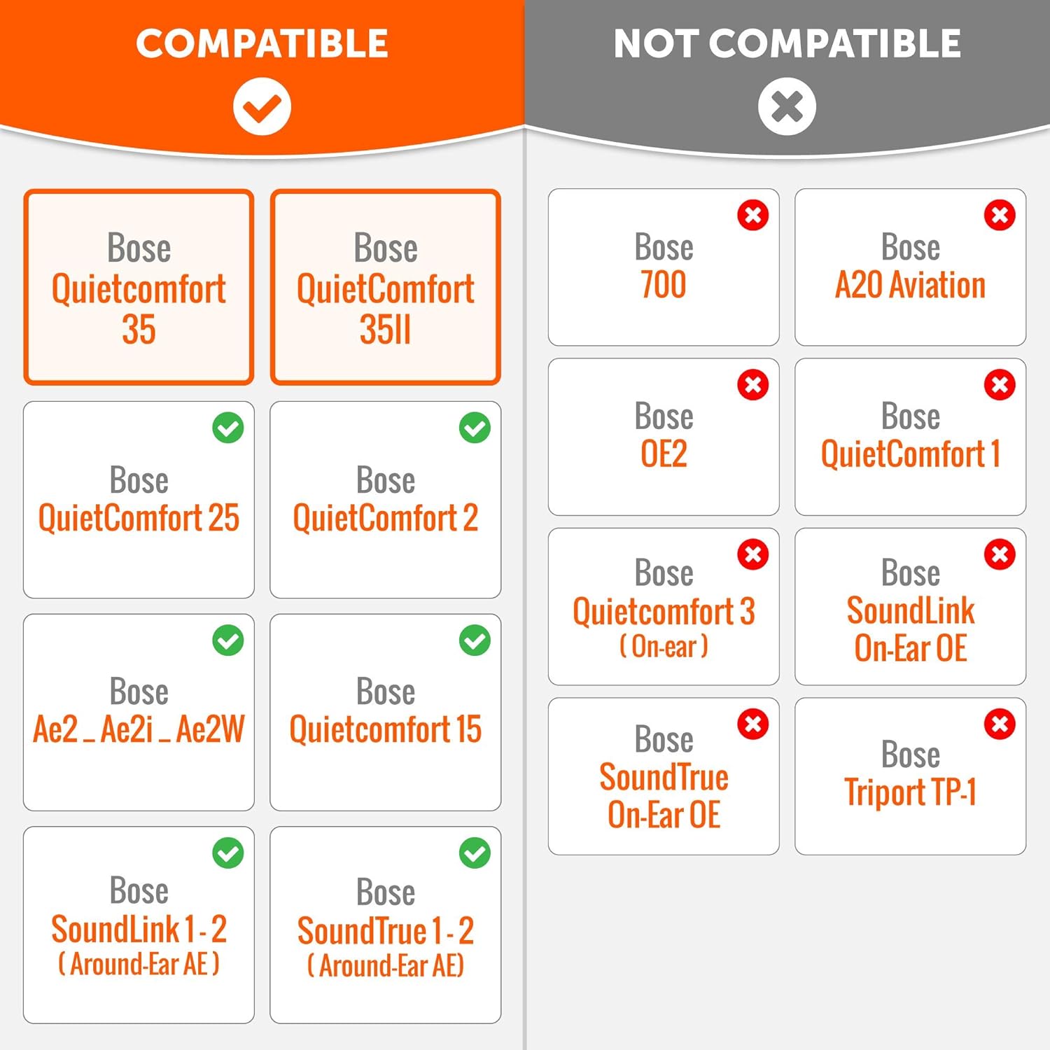- Fits Like A Glove: These ear pads, made by Wicked Cushions, fit the following models of Bose Headphones perfectly: QuietComfort 35 & 35ii / Quiet Comfort 2 / Qc25 / Qc15 / Ae2 / Ae2i / Ae2w / SoundTrue / SoundLink