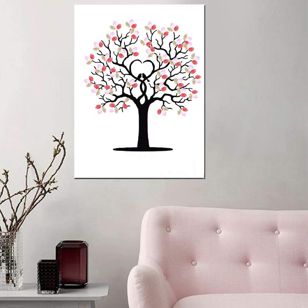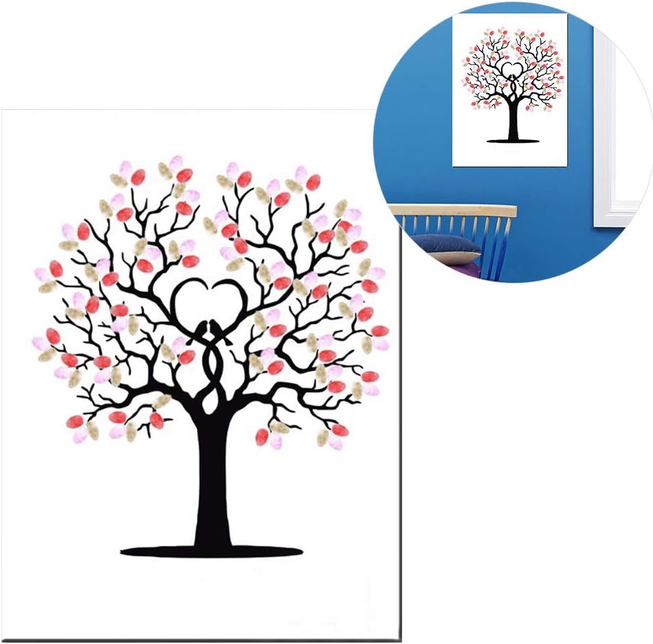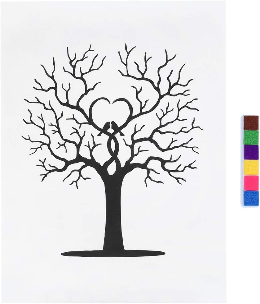 Wedding Fingerprint Tree, Canvas Signature Guestbook, Fingerprint Family Tree Kit with 6 Colors Inkpad, Fingerprint Guest Book for Wedding Birthday Party