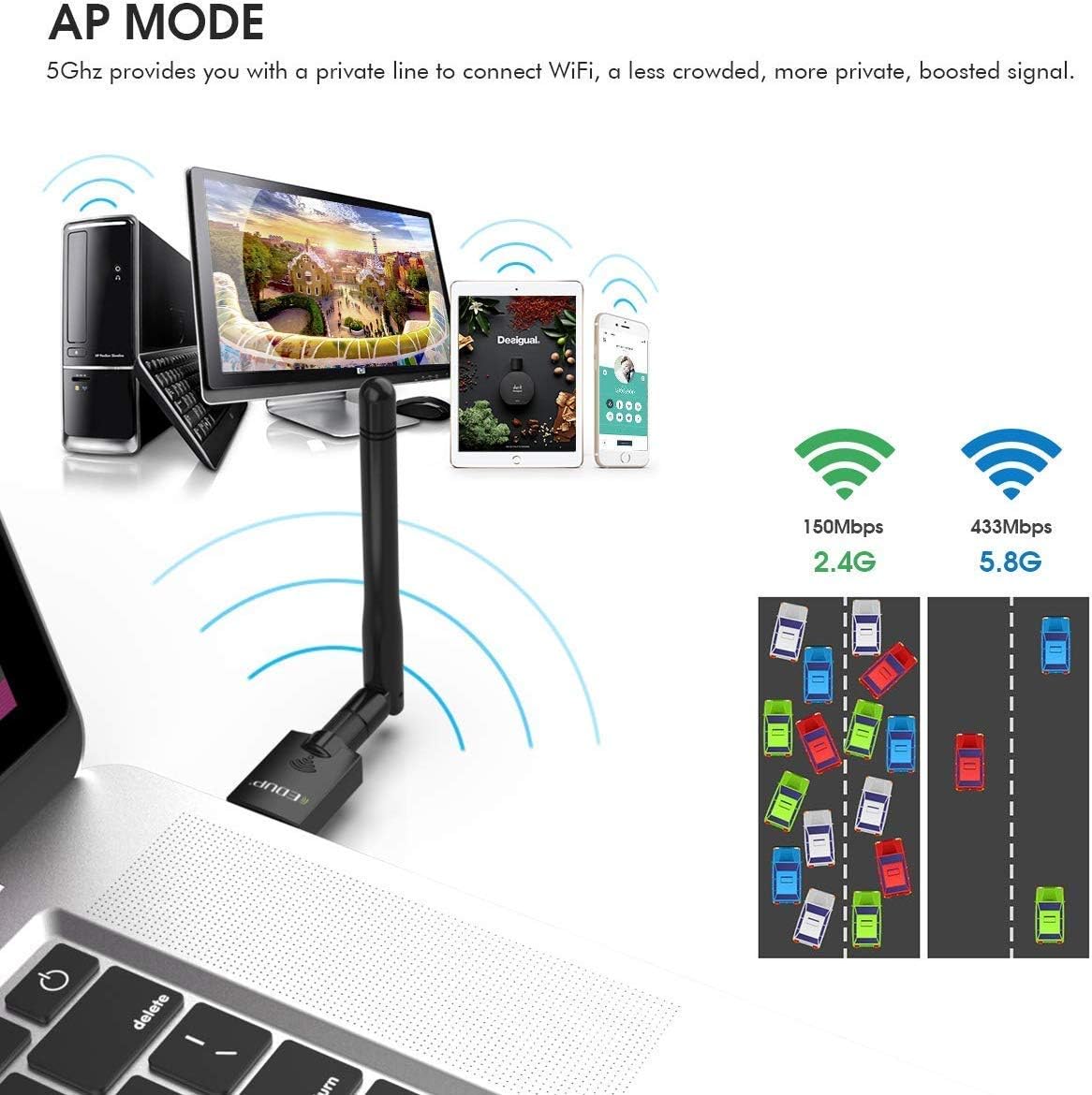 Built with 802.11ac WiFi technology, this adapter is up to 3X faster than traditional 2.4GHz-only adapters. Compatible with 802.11 a/b/g/n/ac networks, it's designed for smooth performance on both legacy and modern routers.