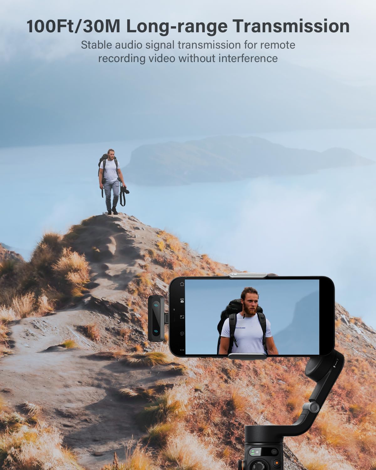 - 【LONG BATTERY LIFE】The microphone wireless offers impressive battery life, with up to 7 hours of continuous use per microphone, or a total of 14 hours when both mini mic are in use simultaneously. This long battery life makes it ideal for extended recording sessions, interviews, podcasts, or live streaming without worrying about battery drains. Additionally, iphone microphone included USB-C charging cable allows you to recharge your microphone easily for future use.