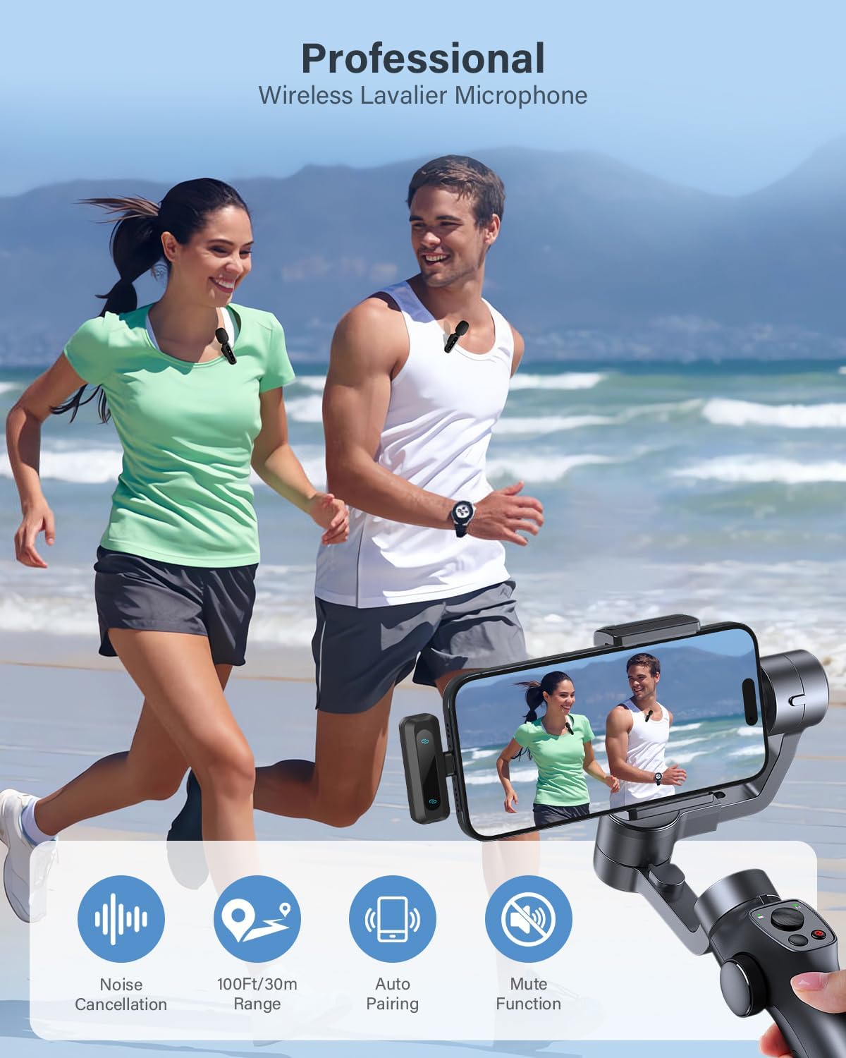 Wireless Lavalier Microphone for iPhone, iPad, Android Phone,2-Pack Mini Microphone with Noise Reduction, Auto Pairing and Mute & Reverb for Vlogging, Video Recording, TikTok, YouTube - Plug & Play