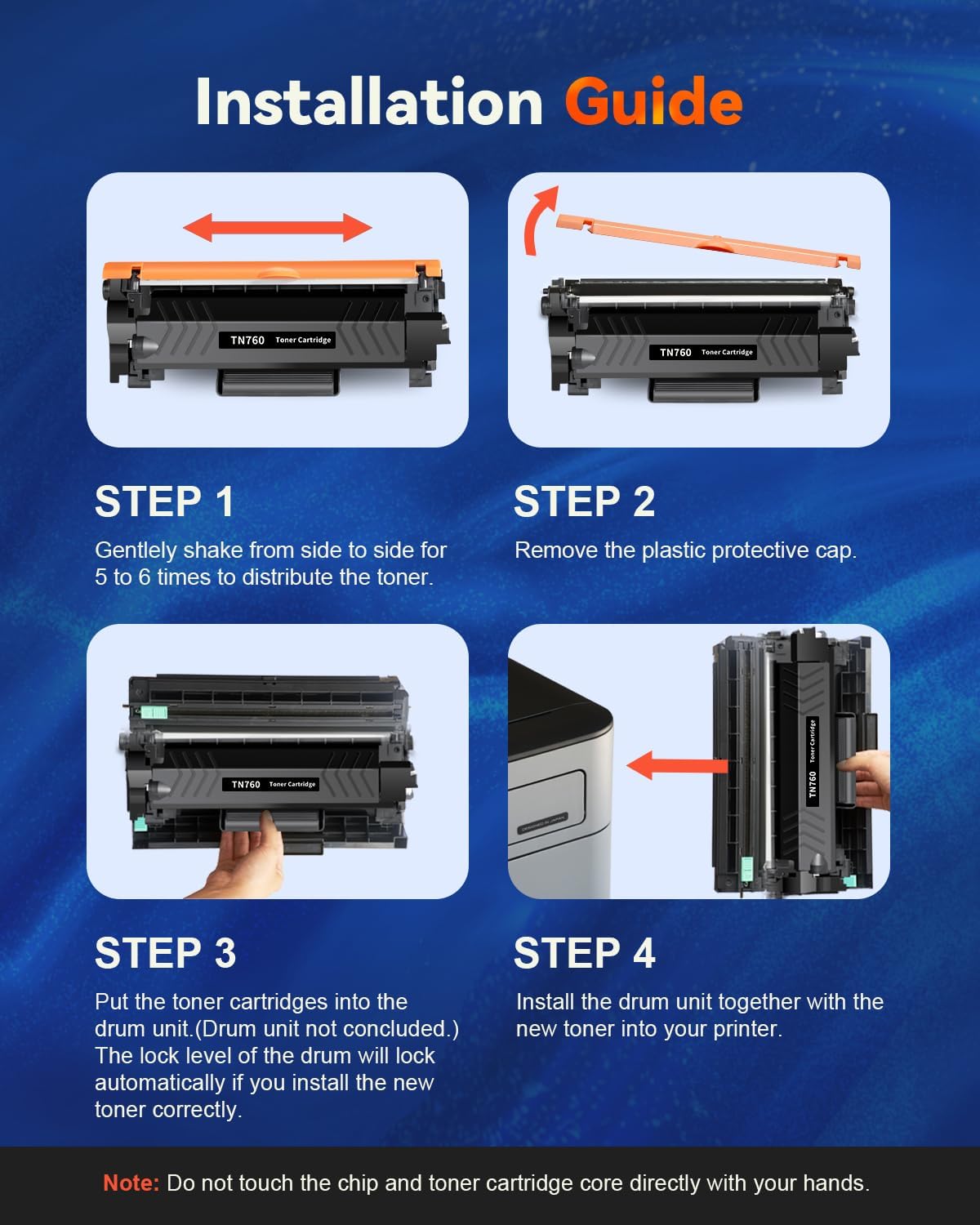 - 【Package Contents】: 2 Black TN760 toner cartridge[WITH CHIP]
