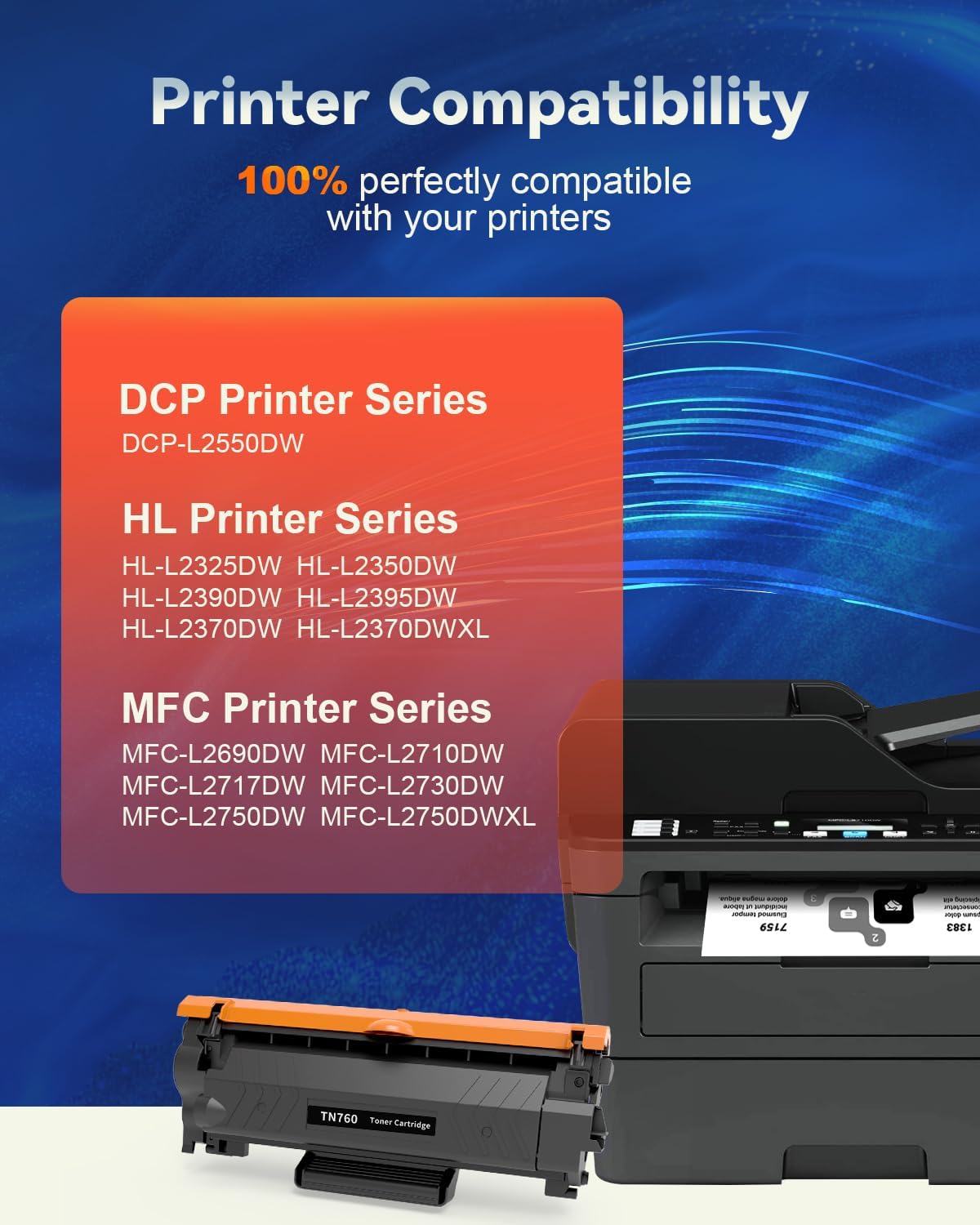 - 【Compatible Laser Printer Models】: TN760 TN730 toner cartridge compatible with DCP-L2550DW HL-L2350DW HL-L2370DW HL-L2370DWXL HL-L2390DW HL-L2395DW MFC-L2750DW MFC-L2750DWXL MFC-L2710DW MFC-L2730DW and laser printer toner
