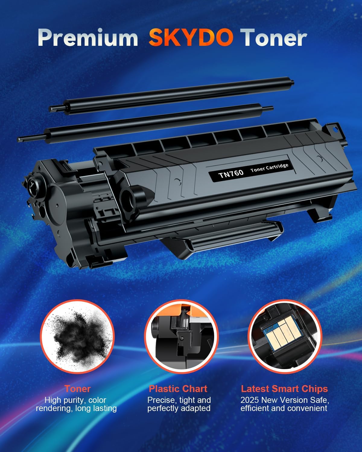 - 【Easy to Install and Use】: All Skydo TN760 toner cartridges can be recognized by compatible printer instantly and work flawlessly