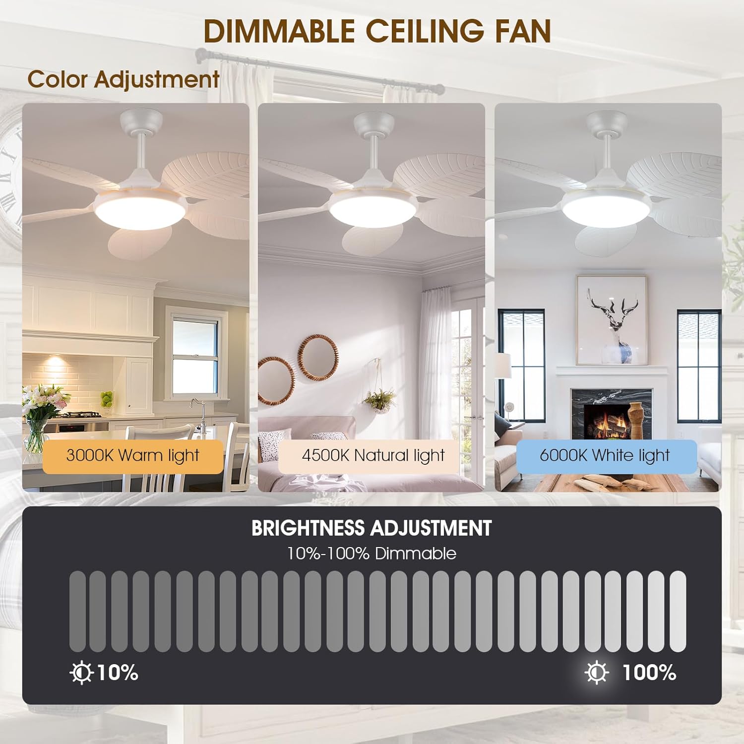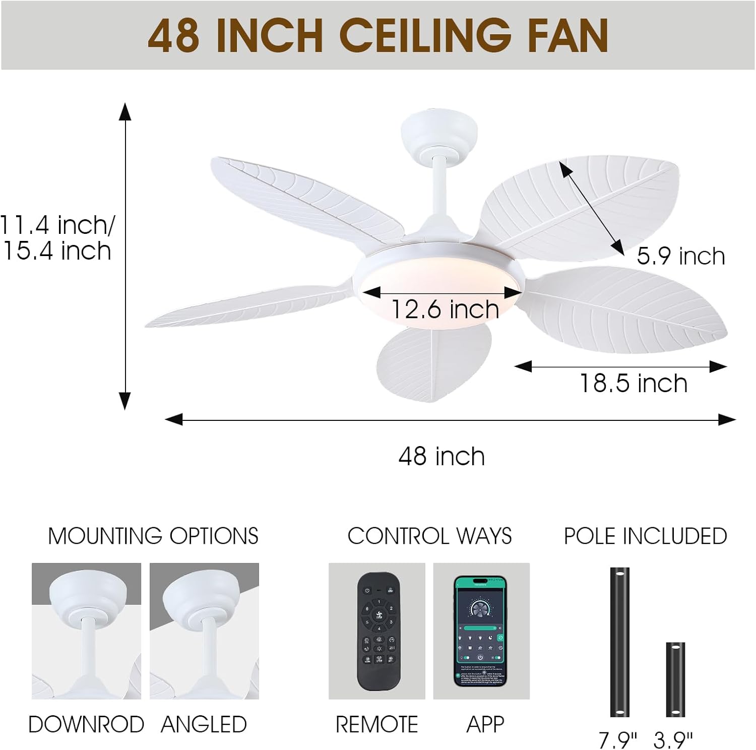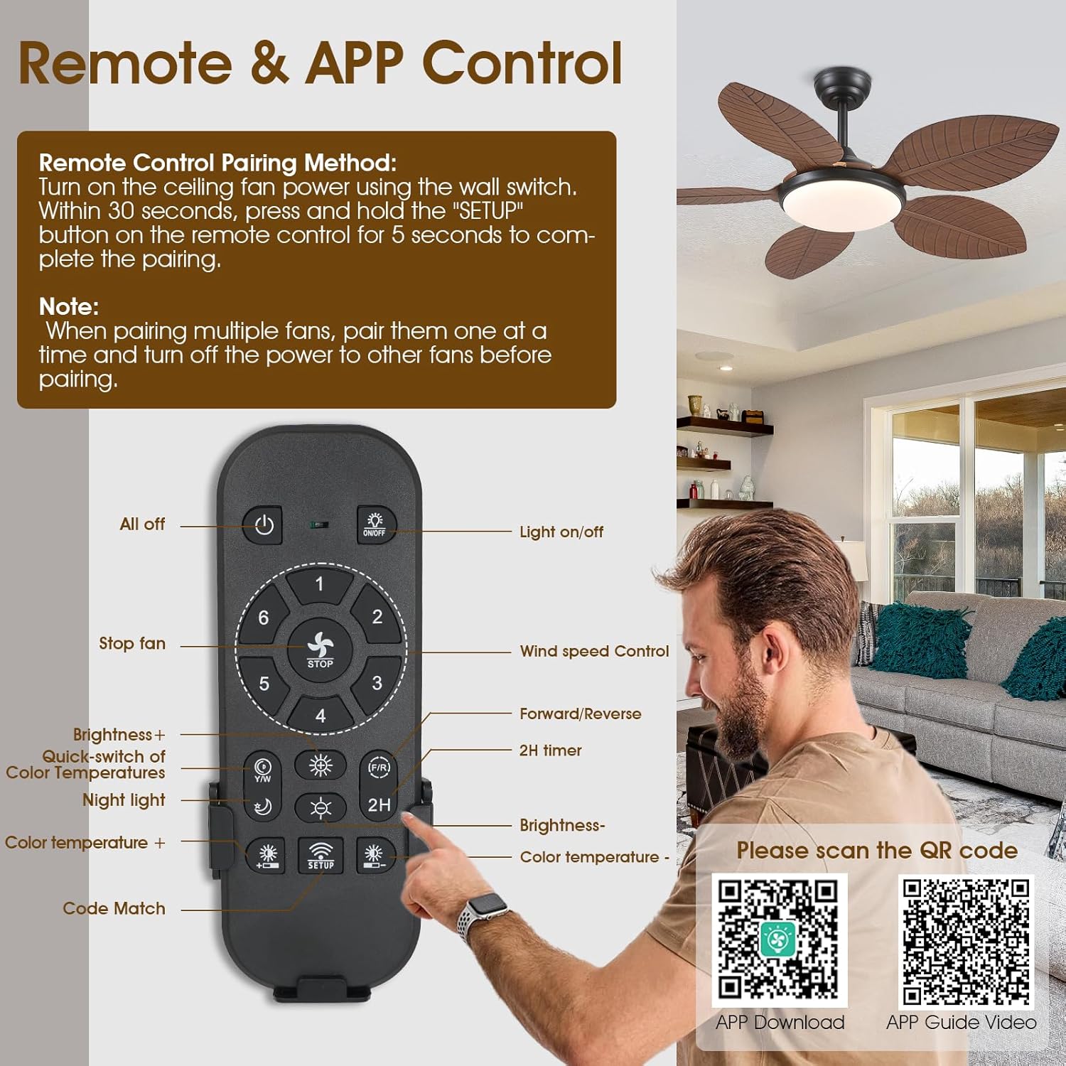 - Smart Control: Equipped with remote control and APP functionality, this palm ceiling fan is easy to operate. You can adjust the fan speed and lighting anytime, anywhere, enjoying the convenience of a smart home.