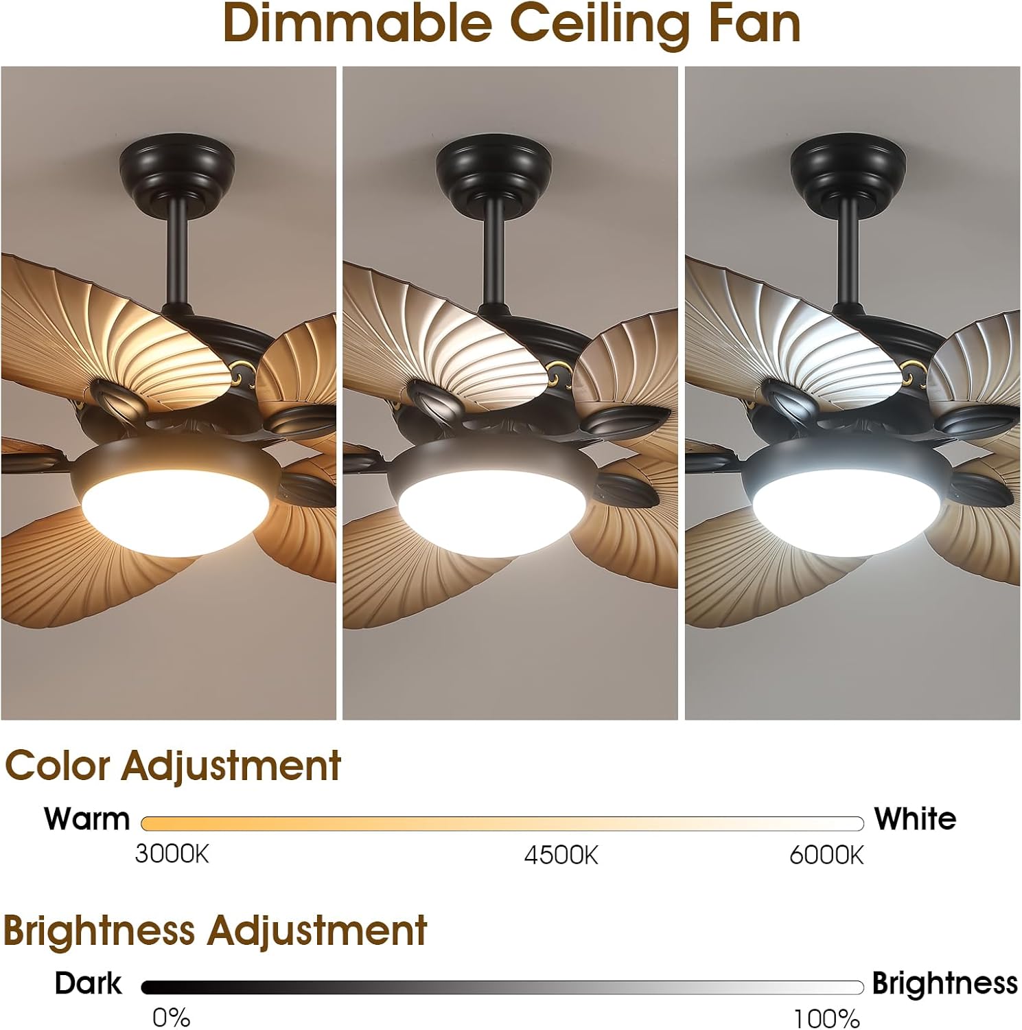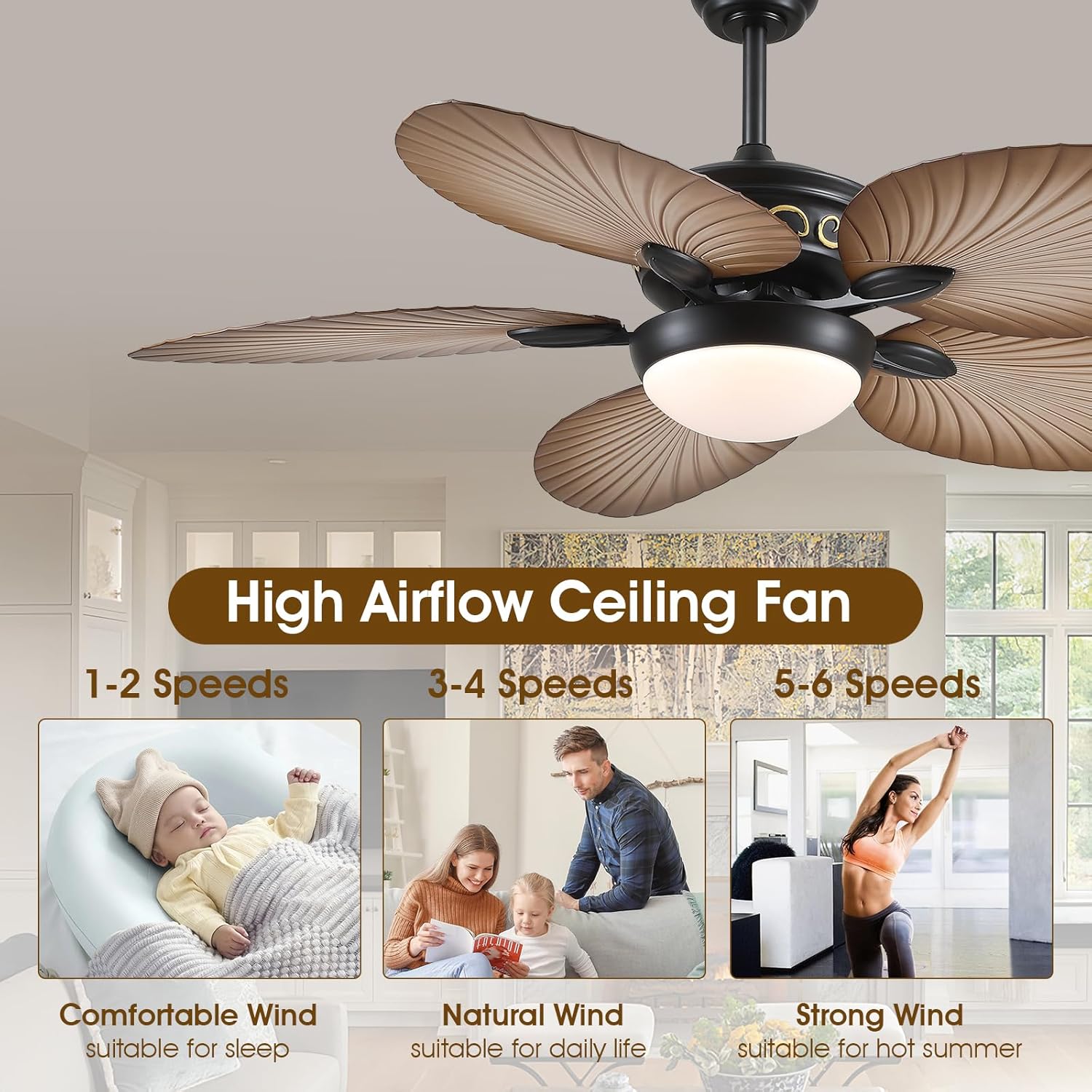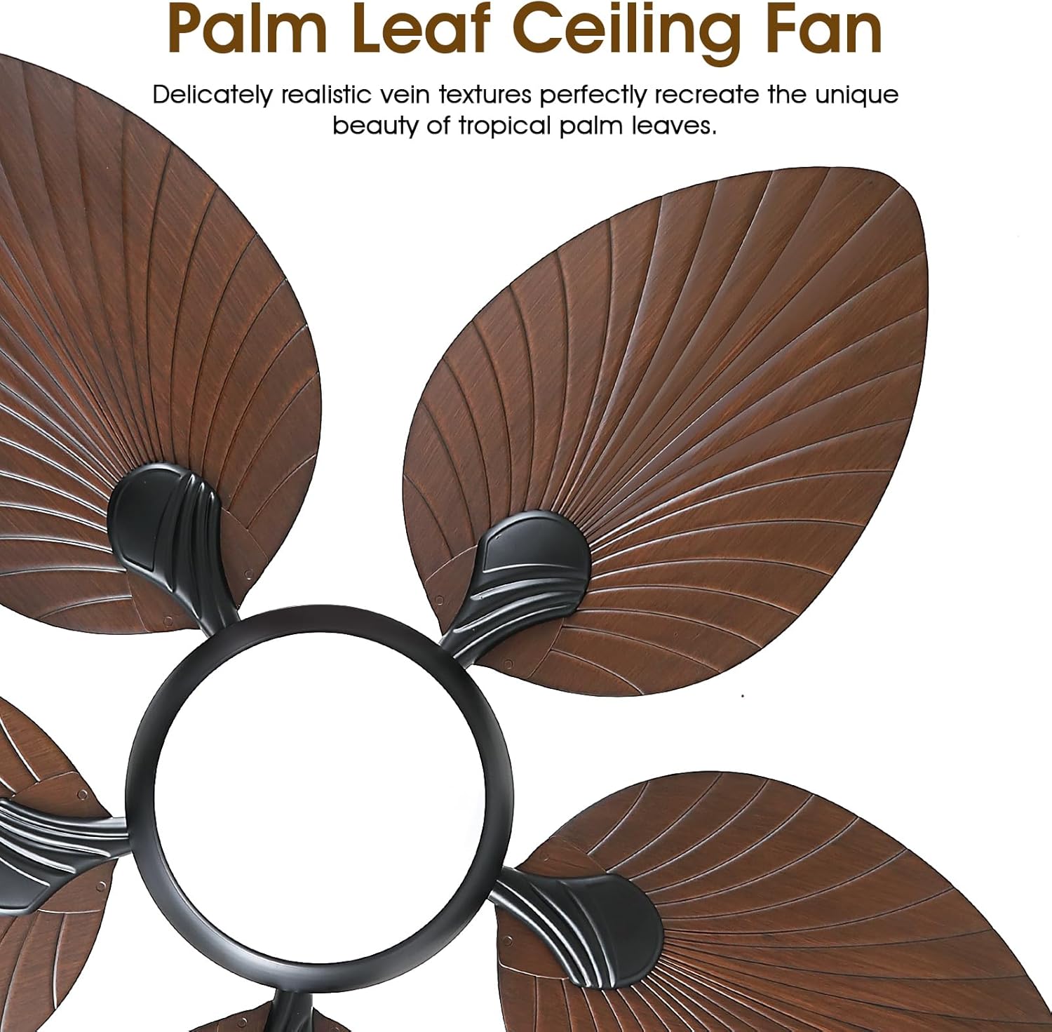 - High Quality Motor: Featuring a high-efficiency, silent DC motor, this palm leaf ceiling fan with light minimizes wind noise. With 6-speed options and forward/reverse functionality, it provides a comfortable and quiet living environment.