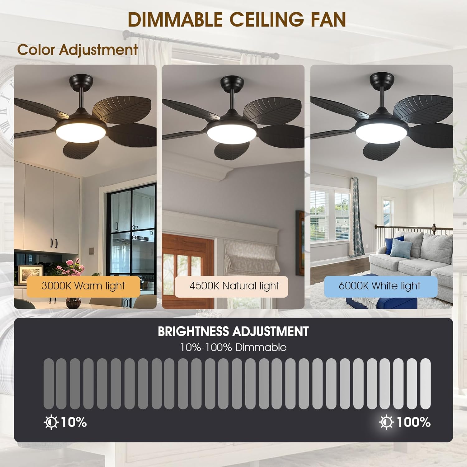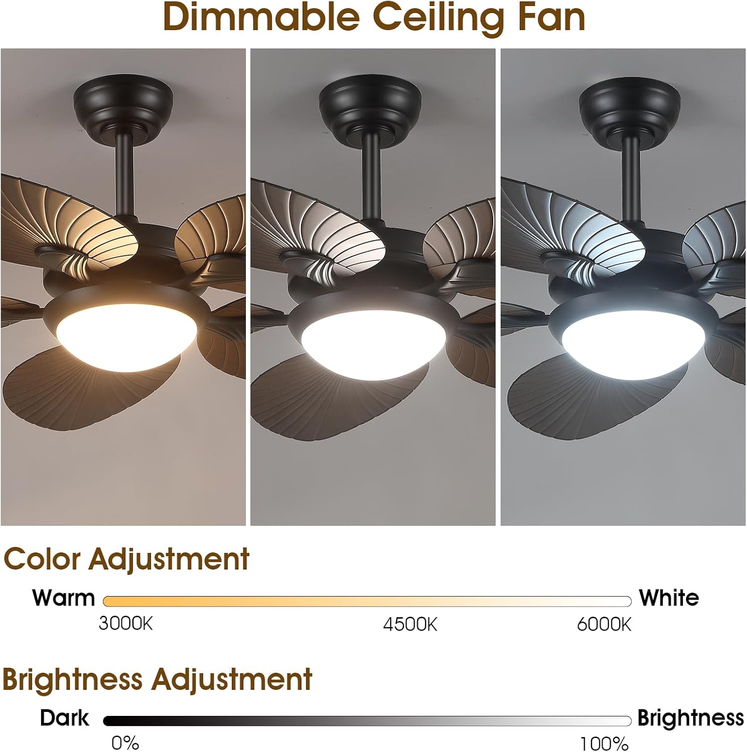 - High-quality Lighting: This leaf ceiling fan is equipped with high-quality lighting, the color and brightness are adjustable to meet your different lighting needs, making your space warmer and brighter.