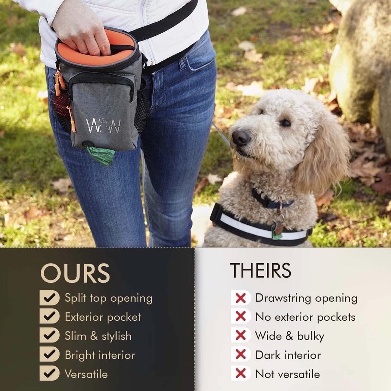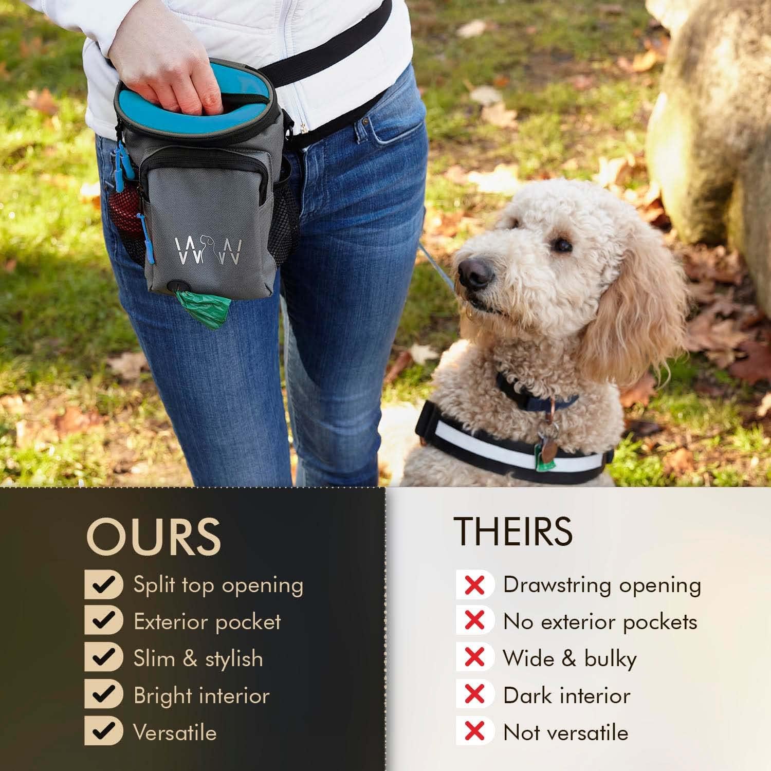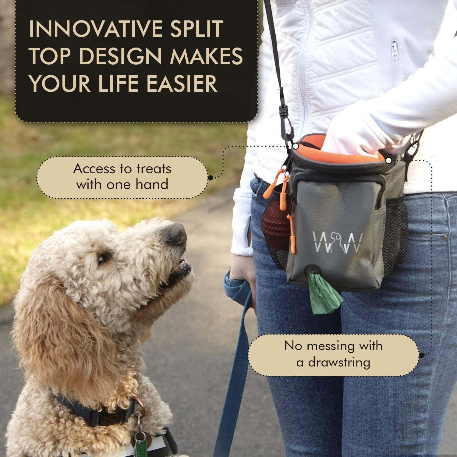 - Quick-Access Split Top for Fast Treat Dispensing The patented overlapping neoprene split top makes it incredibly easy to grab treats quickly—no fumbling with drawstrings, zippers, or snaps. Ideal for training sessions where timing is everything, helping reinforce positive behavior in real time without breaking your dog’s focus.
