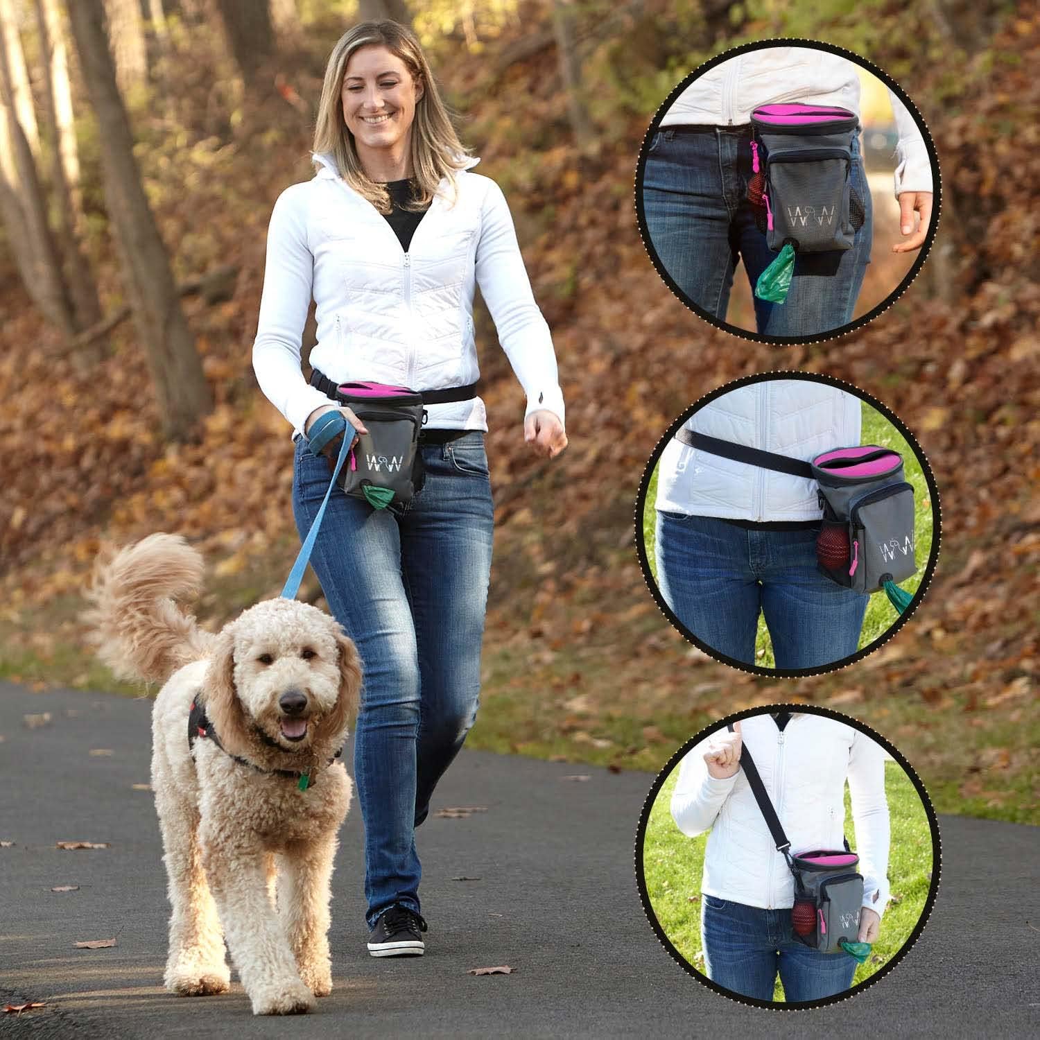 - Versatile 3-Way Wear Design for Maximum Comfort Wear it your way: crossbody, around the waist, or clipped to your waistband. The included adjustable straps extend up to 60", offering a secure and comfortable fit for dog owners of all sizes. Perfect for walks, hikes, training classes, and trips to the dog park.