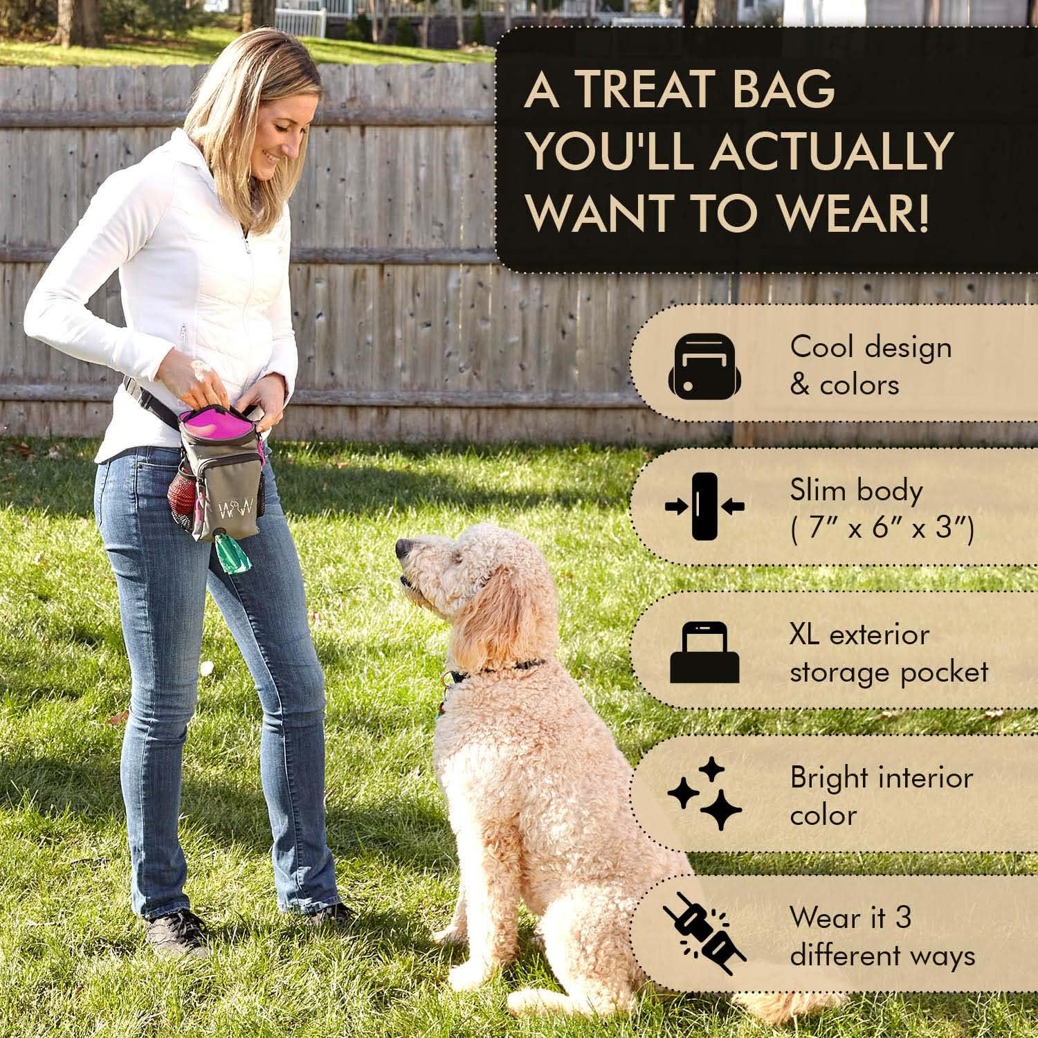 Wolf in Winter Quickdraw XL Dog Treat Pouch Bag for Training with Waste Bag Holder Phone Pocket and Belt Clip – Dog Accessories for Walking Hiking and Puppy Essentials – (Raspberry)