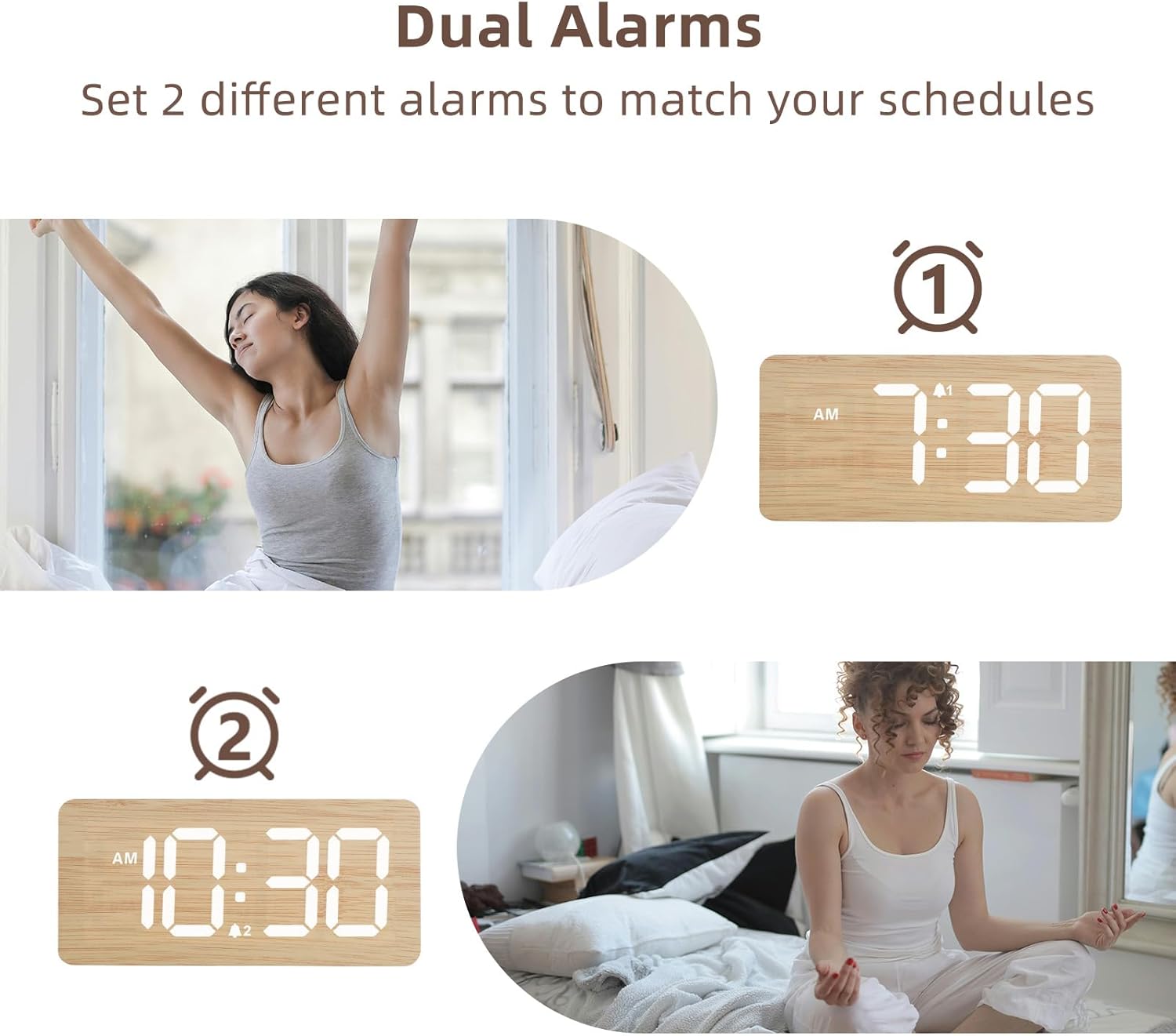 Purilite Select Wooden Digital Alarm Clock with Large LED Display