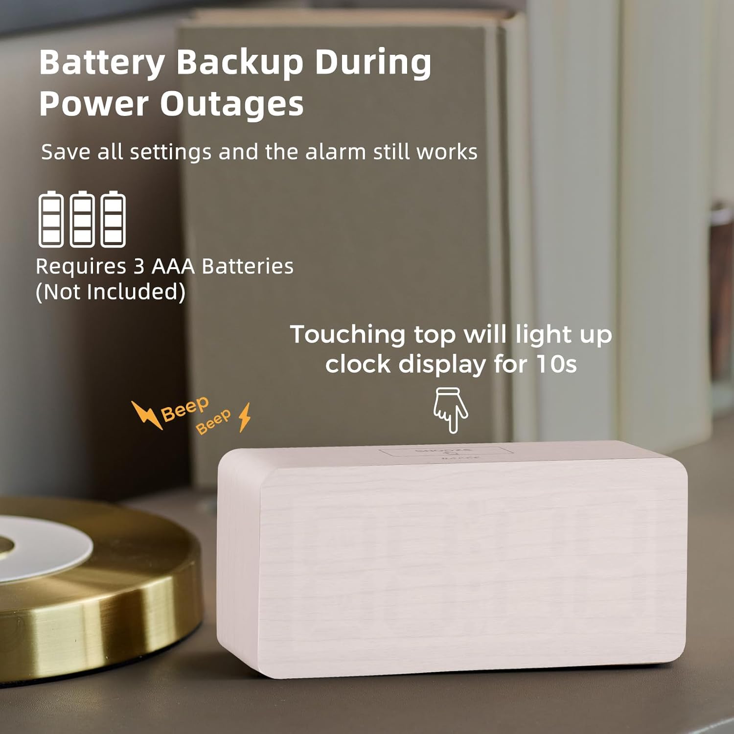 Powered via a standard AC adapter (included), this clock also features a built-in USB port for charging your phone or devices overnight. In the event of a power outage, simply insert 3 AAA batteries (not included) for full backup — preserving time and alarm settings without interruption.