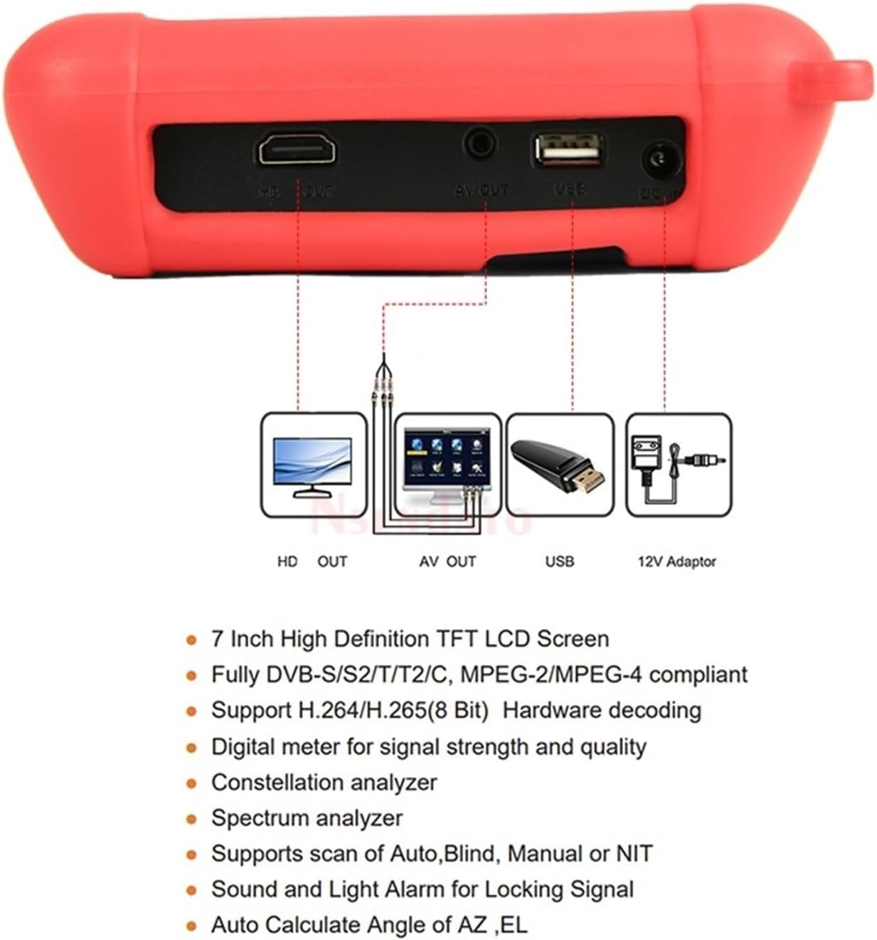 WS6980 DVB-S2 DVB-T2/C Satellite Sat Finder Meter 7 Inch Satellite Signal Spectrum Analyzer for Dish Network Directv