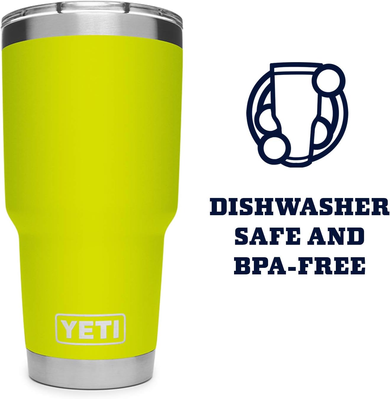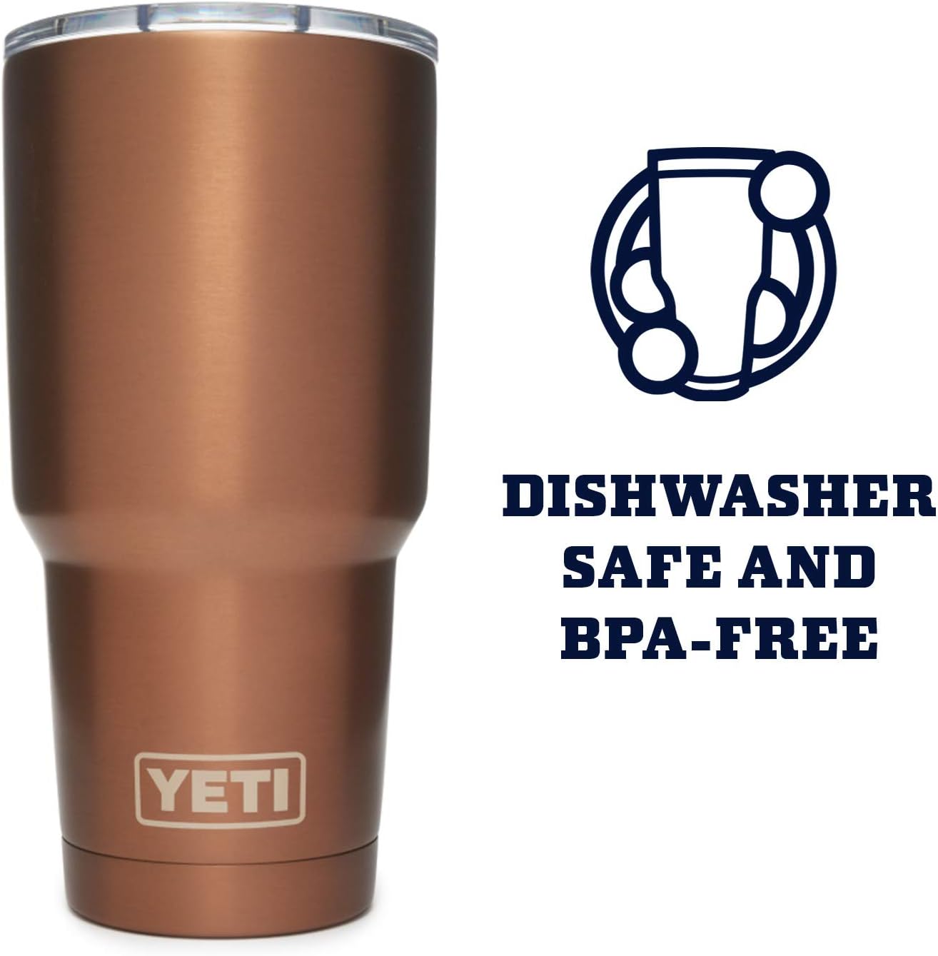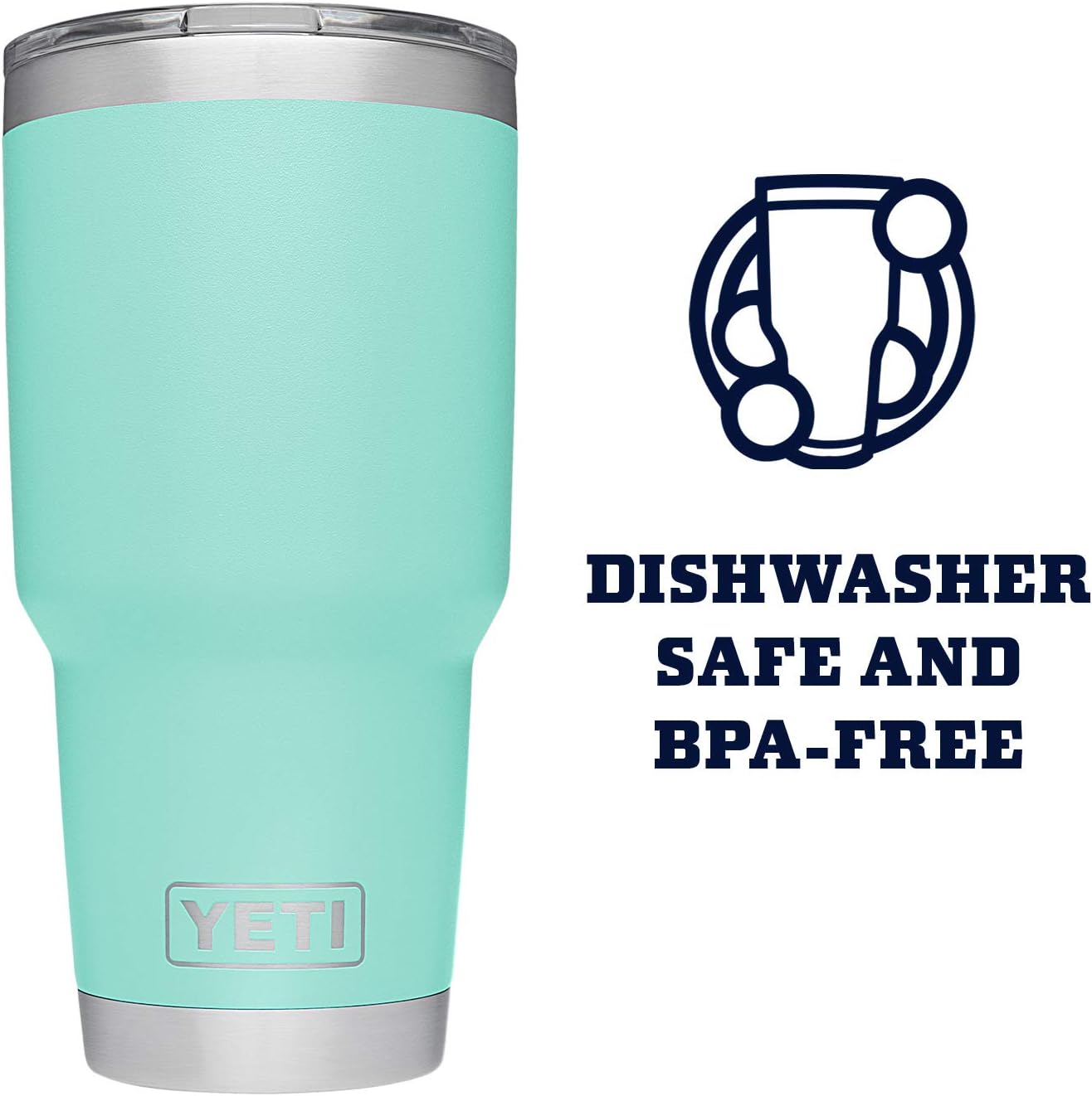 - YETI Ramblers are BPA-free, dishwasher safe, and have a No Sweat Design to make sure your hands stay dry. The tough Duracoat coating on the colored tumblers won’t crack, peel or fade